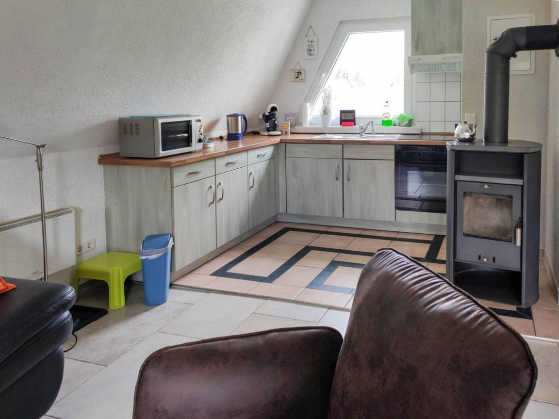 Layout : Parterre: offene Küche mit Wasserkocher, Kochherd(4 Kochplatten, Ceranfeld), Kaffeemaschine(cups), Backofen, Mikrowelle , Wohn/Esszimmer mit TV(Flatscreen, Satellit), Esstisch, Ofen(Holz), Sitzecke , Badezimmer mit Waschbecken, Dusche, Toilette