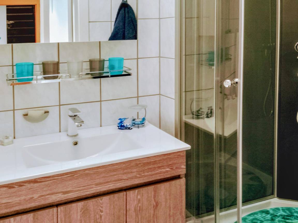 In der 1. Etage(über steile Treppe): Küche mit Esstisch, Wasserkocher, Toaster, Kochherd(Ceranfeld, elektrisch), Kaffeemaschine(Filter), Backofen, Mikrowelle , Schlafzimmer mit Doppelbett(200 x 200 cm) , Schlafzimmer mit Einzelbett(90 x 180 cm), Etagenbett, TV(Satellit) , Badezimmer mit Waschbecken, Dusche, Toilette, Föhn