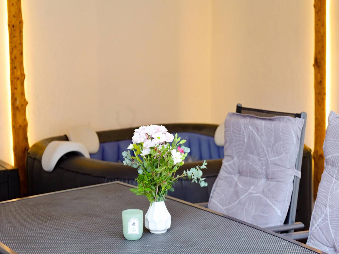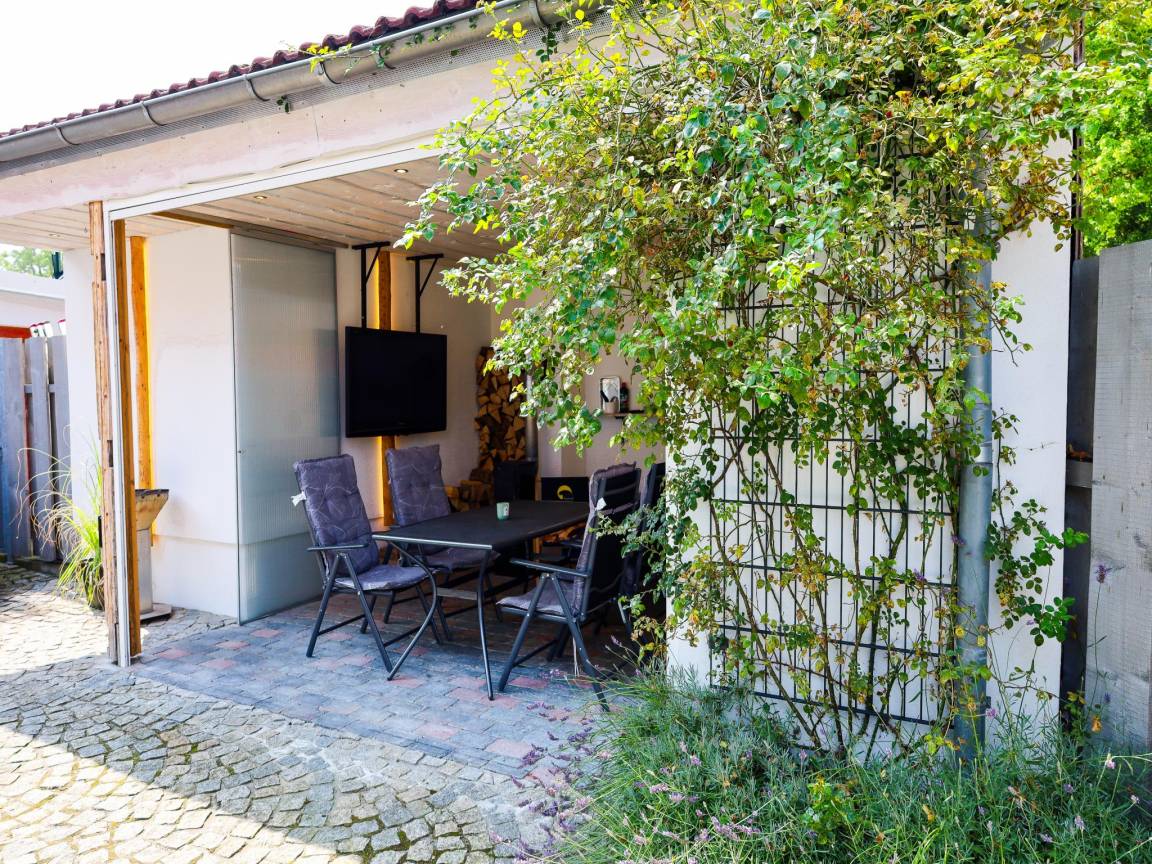 Waschraum mit Wäschetrockner(gegen Gebühr), Waschmaschine(gegen Gebühr) , Heizung(Gas, Holz), Terrasse(überdacht, 20 m²) mit TV(Flatscreen, Satellit), Ofen(Holz), Wellness Badewanne(gegen Gebühr, mit Heizelement) , Garten(alleinige Nutzung, umzäunt, 40 m²), BBQ(Holzkohle), 2x Parkplatz, Liegestühle, 1x Kinderbett (ohne Bettwäsche), 1x Hochstuhl, Treppenschutzgitter, Gesellschaftsspiele