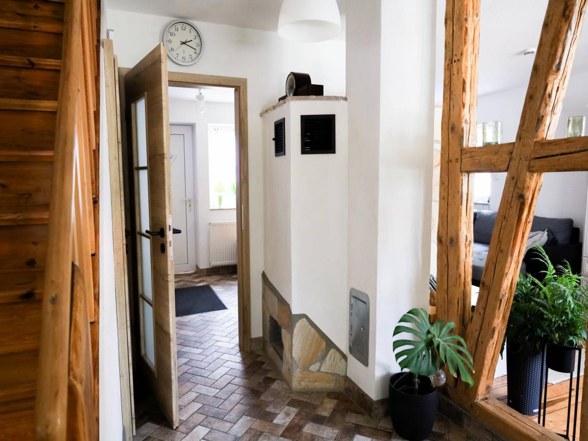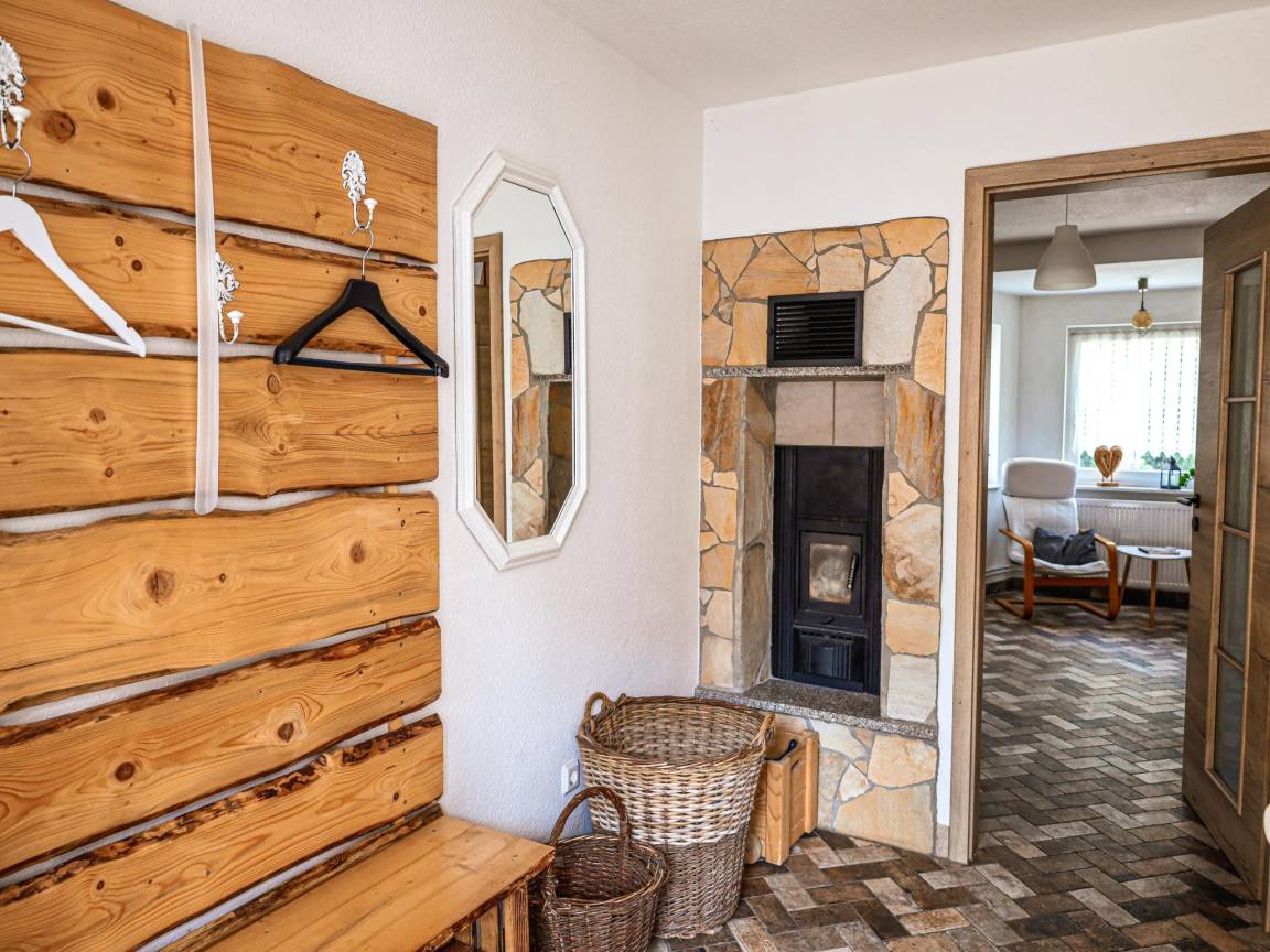 Hausbeschreibung : Dieses liebevoll gestaltete Ferienhaus in Hüttenrode bietet Ihnen Wellness und Gemütlichkeit zugleich. Entspannen Sie vor dem Kachelofen, in der Infrarotsauna oder in der Wellneswanne (gegen Gebühr). Die überdachte Terrasse und der eingezäunte Garten laden zum Grillen und Sonnenbaden ein. Eine charmante Holztreppe führt ins Obergeschoss mit uriger Dachschräge. Ideal für Naturliebhaber, Paare und Familien, die den Harz aktiv entdecken und erholsame Abende genießen möchten