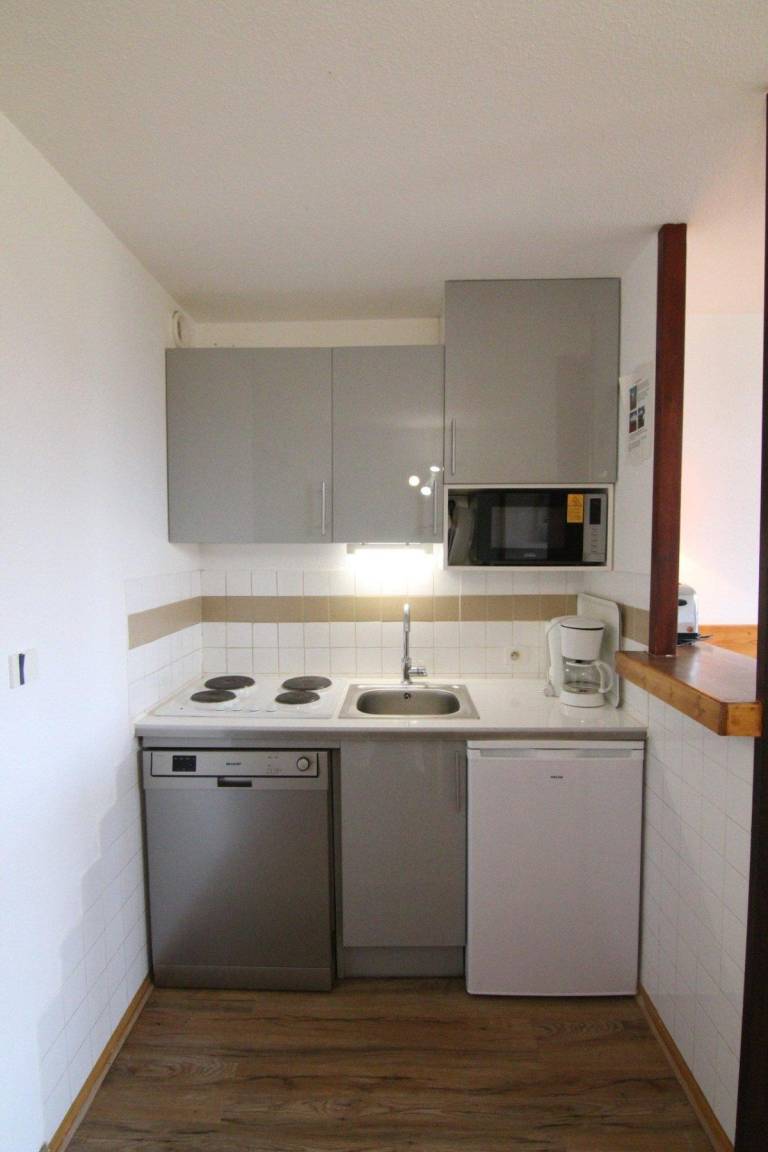 Die Residenz Les Mélèzes mit 8 Stockwerken und Aufzug befindet sich im Ferienort L'Alpe d'Huez. Sie ist ideal gelegen, 100 m von den Skipisten von Les Bergers und 400 m von der Skischule entfernt. Das Zentrum des Ferienortes liegt 1 km von der Residenz entfernt. Das Einkaufszentrum von Les Bergers finden Sie 210 m von der Unterkunft entfernt. Fläche von ungefähr 30 m². 1te Etage. Orientierung : Ost, Süd. Diele mit 2 Stockbetten (80). Wohnzimmer mit Ausziehschlafcouch für 2 Personen (80). Schlafzimmer mit Doppelbett (140). Kochnische mit Wasserkocher, Kaffeemaschine, kleiner Backofen mit Mikrowellenfunktion, Toaster, Geschirrspülmaschine, elektronische Herdplatten. Badezimmer. WC. Balkon. Die oberen Betten sind nicht für Kinder unter 6 Jahren geeignet.