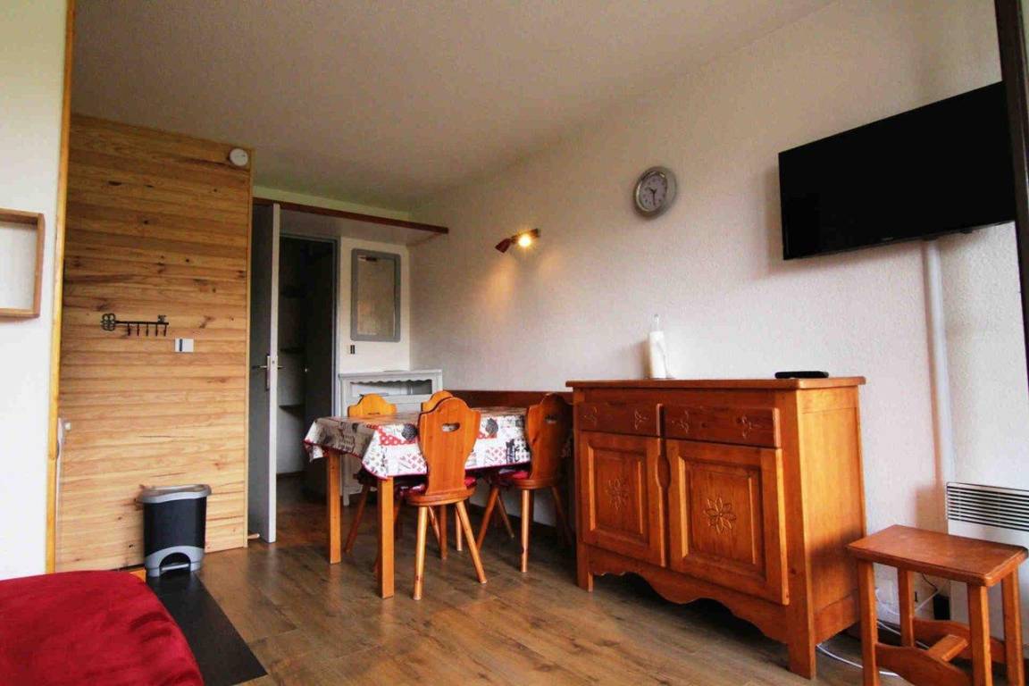 Die Residenz Les Mélèzes mit 8 Stockwerken und Aufzug befindet sich im Ferienort L'Alpe d'Huez. Sie ist ideal gelegen, 100 m von den Skipisten von Les Bergers und 400 m von der Skischule entfernt. Das Zentrum des Ferienortes liegt 1 km von der Residenz entfernt. Das Einkaufszentrum von Les Bergers finden Sie 210 m von der Unterkunft entfernt. Fläche von ungefähr 25 m². Erdgeschoss. Orientierung : Ost, Süd. Diele mit Einzelbett (80), 2 Stockbetten (80). Wohnzimmer mit Ausziehschlafcouch für 2 Personen (80). Küche mit Wasserkocher, Kaffeemaschine, kleiner Backofen mit Mikrowellenfunktion, Geschirrspülmaschine, elektronische Herdplatten. Badezimmer. separates WC. Balkon. Die oberen Betten sind nicht für Kinder unter 6 Jahren geeignet.