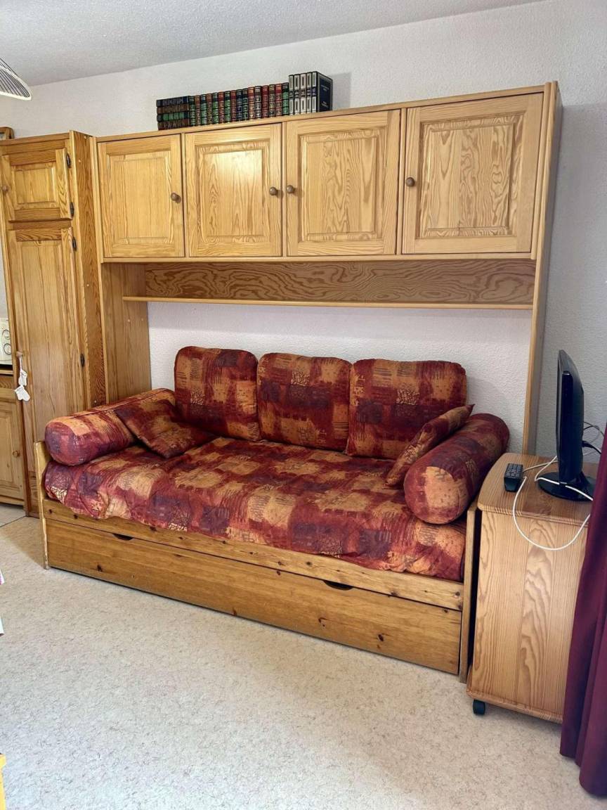 Die Residenz Val d'Huez befindet sich im Stadtteil Eclose und in der Nähe von Geschäften und dem Alpe Express. Die ersten Skilifte sind nur 150 Meter entfernt und die Skipisten von Berges sind 800 Meter entfernt. Das Zentrum des Resorts mit Schwimmbad und Eisbahn liegt 750 Meter entfernt. Fläche von ungefähr 27 m². 3te Etage. Orientierung : Süd. Wohnzimmer mit Ausziehschlafcouch für 2 Personen (80). Schlafbereich mit 2 Stockbetten (80). Schlafbereich mit Ausziehschlafcouch für 2 Personen (80). Kochnische mit Kaffeemaschine (filtre), Backofen, kleiner Backofen mit Mikrowellenfunktion, Toaster, elektronische Herdplatten. Badezimmer. separates WC. Die oberen Betten sind nicht für Kinder unter 6 Jahren geeignet.