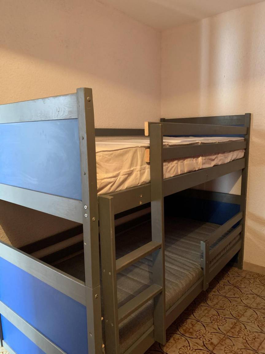 Fläche von ungefähr 30 m². 4te Etage. Orientierung : Süd. Wohnzimmer mit 4 Stühle, Klappschlafcouch (130 cm), Tisch, Couchtisch. offener Schlafbereich mit 2 Stockbetten. Küche mit Raclettegerät, Kaffeemaschine, Backofen, kleiner Backofen mit Mikrowellenfunktion, Toaster, 2 Glaskeramikkochfelder. Badezimmer. WC. Staubsauger, Bügeleisen. Die oberen Betten sind nicht für Kinder unter 6 Jahren geeignet.