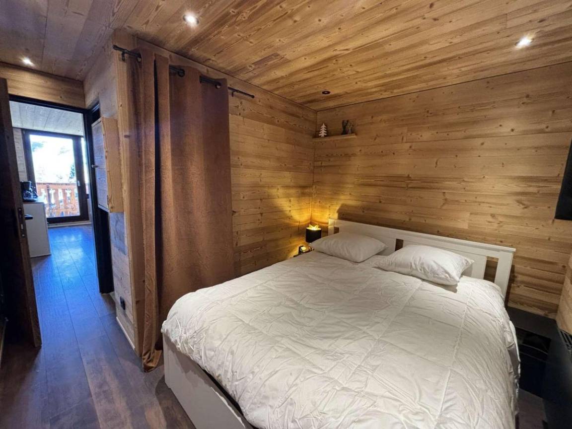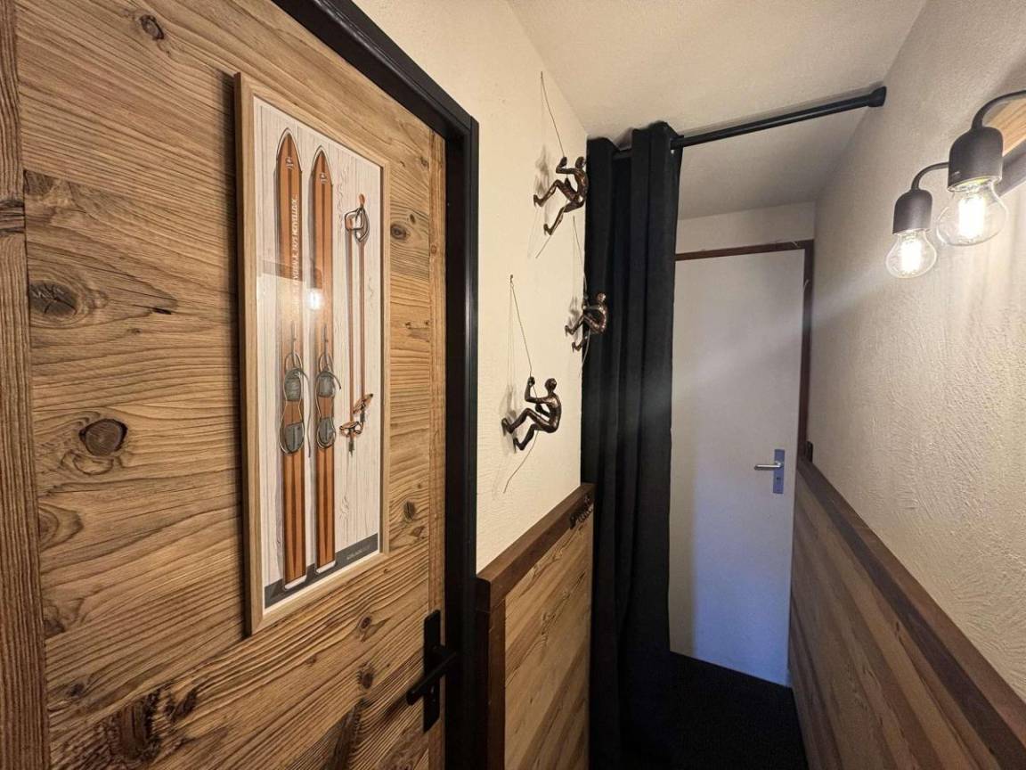 Die Residenz Les Mélèzes mit 8 Stockwerken und Aufzug befindet sich im Ferienort L'Alpe d'Huez. Sie ist ideal gelegen, 100 m von den Skipisten von Les Bergers und 400 m von der Skischule entfernt. Das Zentrum des Ferienortes liegt 1 km von der Residenz entfernt. Das Einkaufszentrum von Les Bergers finden Sie 210 m von der Unterkunft entfernt. Fläche von ungefähr 50 m². 4te Etage. Orientierung : Süd-Ost. Wohnzimmer mit Klappschlafcouch (160). Schlafzimmer mit Doppelbett (160), Waschraum, WC. Schlafzimmer mit 2 Stockbetten (90). Kochnische mit Fonduegerät, Raclettegerät, Kaffeemaschine (Nespresso), kleiner Backofen mit Mikrowellenfunktion, Toaster, Geschirrspülmaschine, 2 Induktionsherdplatten, Kühl-Gefrier-Kombination. Badezimmer mit WC. Balkon. Die oberen Betten sind nicht für Kinder unter 6 Jahren geeignet.