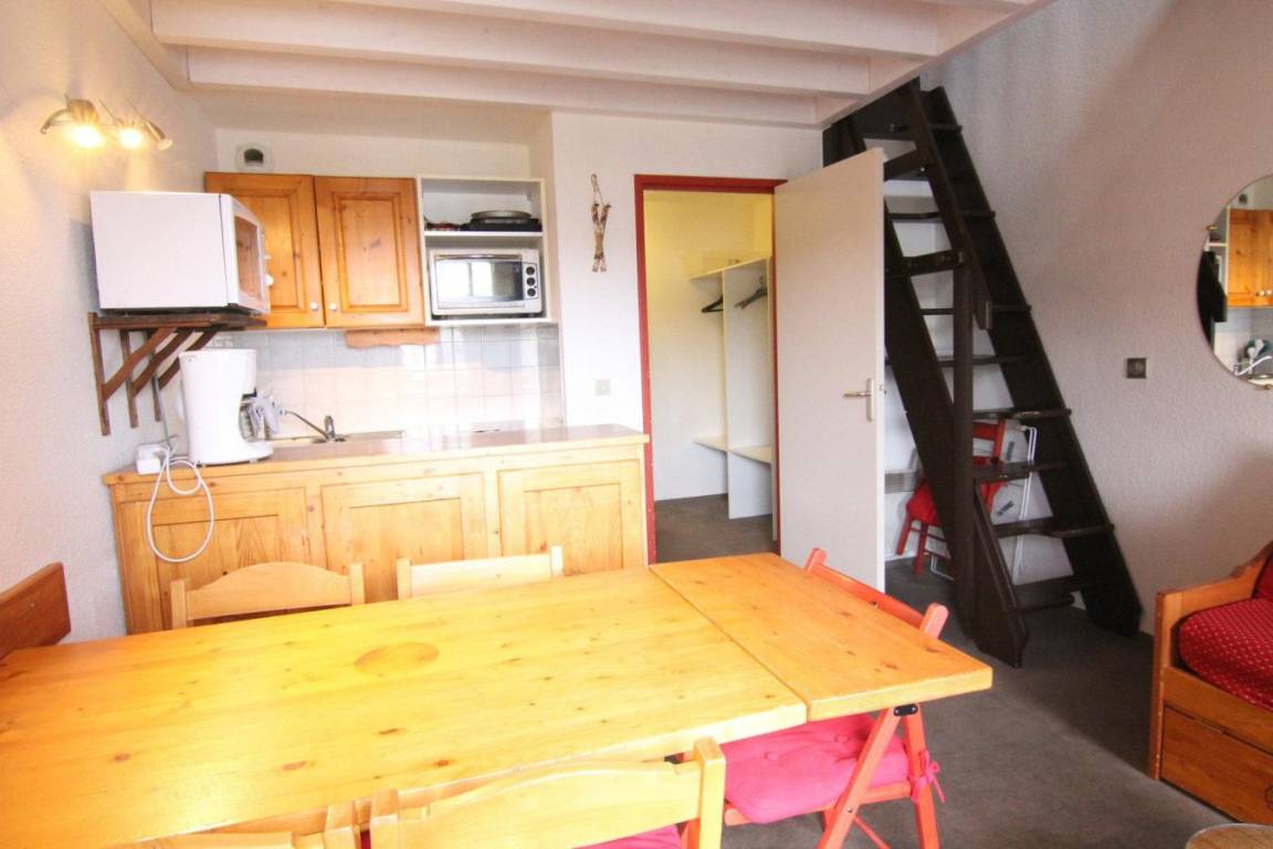 Die Residenz Les Horizons d'Huez befindet sich im Viertel Passeaux in L'Alpe d'Huez. Dieses Viertel ist durch einen Aufzug mit dem Viertel Eclose verbunden. Die Residenz liegt 300 m von Geschäften und dem Alpe Express entfernt, dem Skilift, der Sie zum Ausgangspunkt der Skipisten und zur Skischule Bergers bringt. Das Dorfzentrum, das Schwimmbad und die Eisbahn liegen 900 m vom Gebäude entfernt. Die Residenz besteht aus 5 Etagen mit Aufzug. Fläche von ungefähr 43 m². 3te Etage. Orientierung : West. Wohnzimmer mit einfache Klappschlafcouch (80). Zwischengeschoss mit Doppelbett (140), 2 Einzelbetten (80), 2 Stockbetten (80). Küche mit Raclettegerät, Wasserkocher, Kaffeemaschine, Schnellkochtopf, Backofen, kleiner Backofen mit Mikrowellenfunktion, Toaster, Herdplatten, Kühlschrank. Badezimmer mit Handtuchtrockner. WC. Balkon. Die oberen Betten sind nicht für Kinder unter 6 Jahren geeignet.