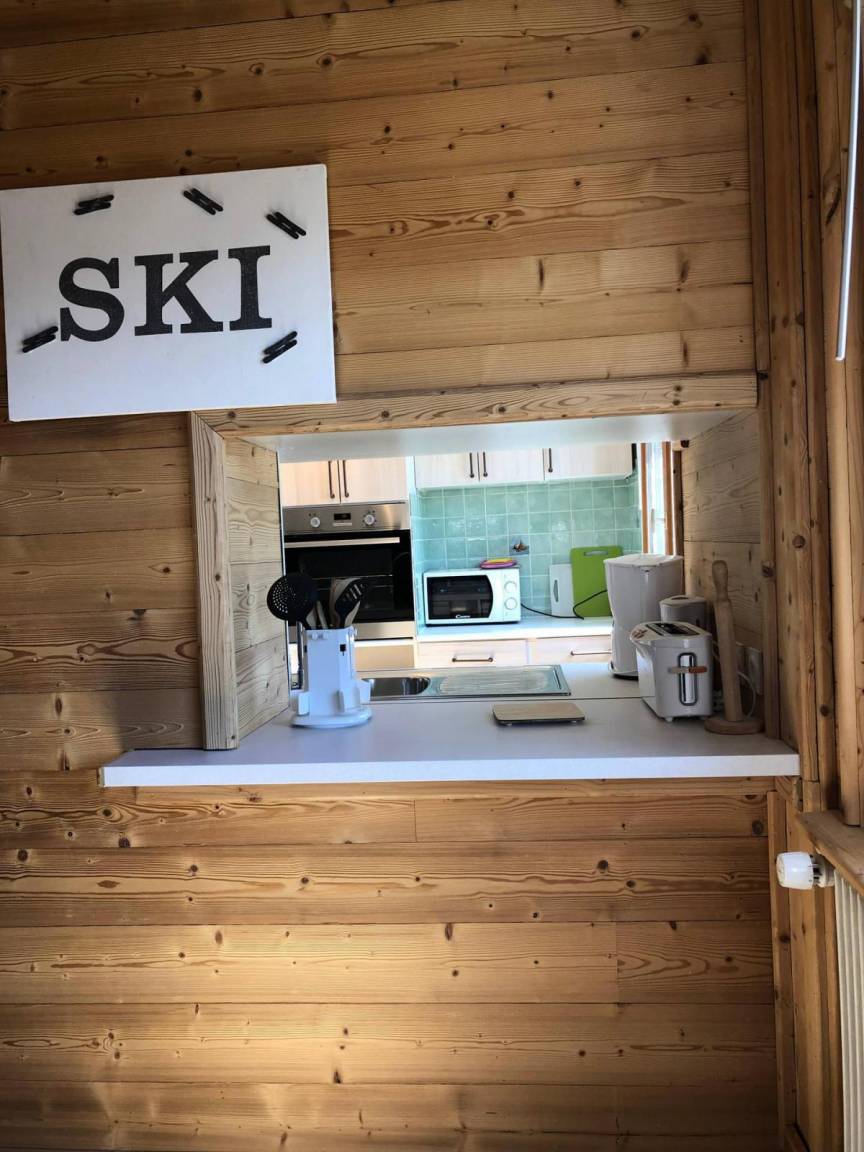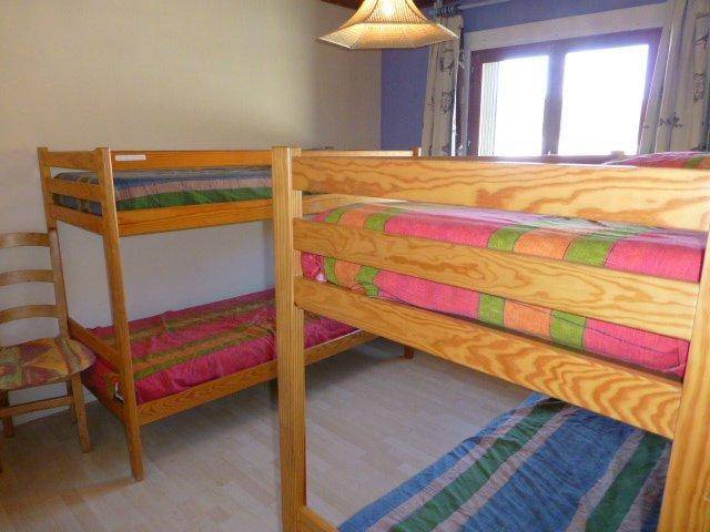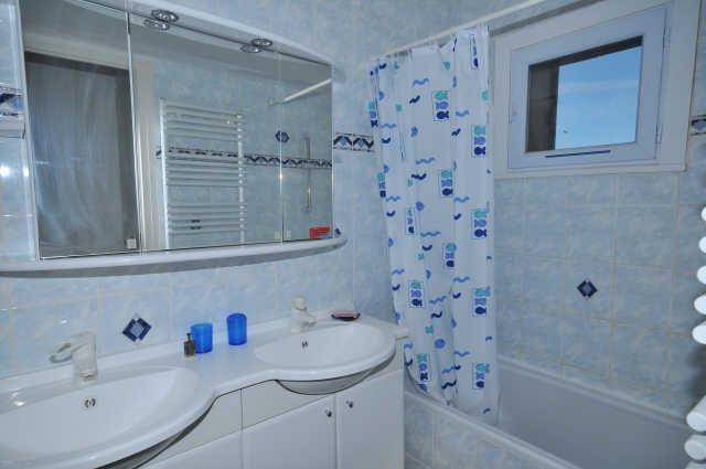 Fläche von ungefähr 66 m². 2te Etage. Orientierung : Süd. Diele mit Staubsauger. Wohnzimmer mit 2 Bänke, Ausziehschlafcouch für 2 Personen, 3 Stühle, Tisch, 2 Couchtische, TV. Schlafzimmer mit Stuhl, 4 Stockbetten. Schlafzimmer mit 2 zwei Einzelbetten (90). Küche mit Wasserkocher, Kaffeemaschine, kleiner Backofen mit Mikrowellenfunktion, Toaster, Geschirrspülmaschine, 2 Glaskeramikkochfelder. Badezimmer mit Handtuchtrockner. WC. Balkon mit 5 Stühle, Tisch. Die oberen Betten sind nicht für Kinder unter 6 Jahren geeignet.
