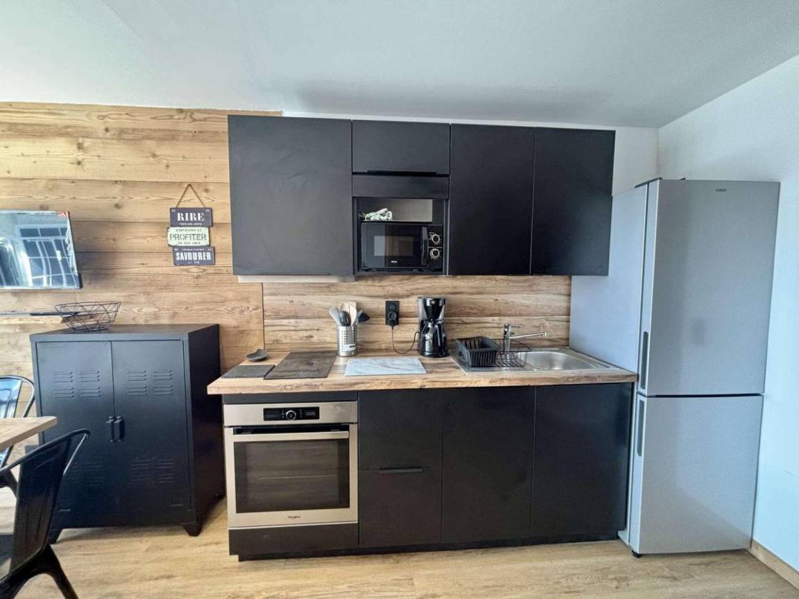 Fläche von ungefähr 35 m². 2te Etage. Orientierung : Süd-Ost. Wohnzimmer mit TV. offener Schlafbereich mit Doppelbett (rabattable), 2 Stockbetten (80). offener Schlafbereich mit Doppelbett. Kochnische mit Fonduegerät, Raclettegerät, Wasserkocher, Kaffeemaschine, Backofen, kleiner Backofen mit Mikrowellenfunktion, Toaster, Geschirrspülmaschine, Mixer, 2 Glaskeramikkochfelder, Kühl-Gefrier-Kombination. Waschräume. separates WC. Die oberen Betten sind nicht für Kinder unter 6 Jahren geeignet.