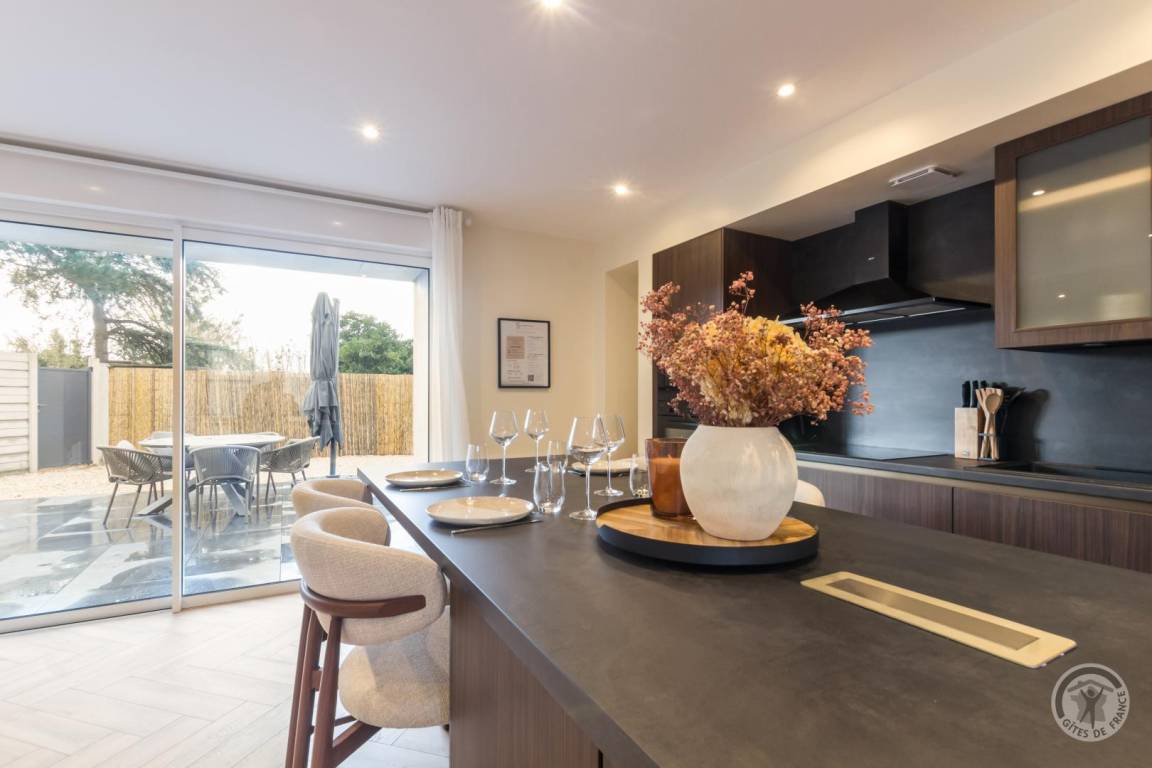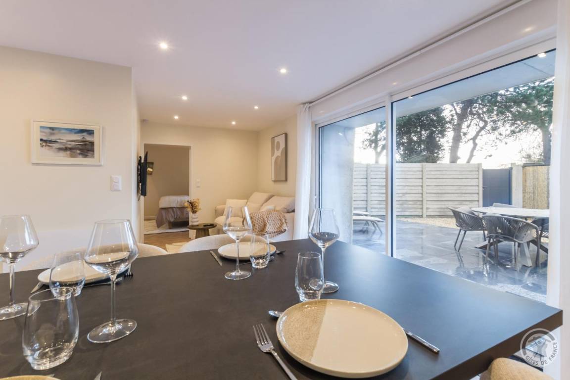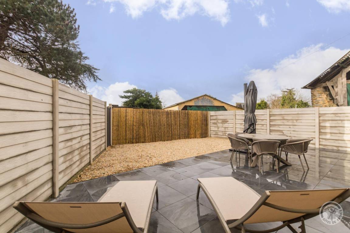 Doppelhaushälfte neben dem Haus des Eigentümers. Komplett ebenerdig. Wohnzimmer mit voll ausgestatteter Küche (Backofen, Induktionskochfeld, Mikrowelle, Geschirrspüler, Kühl-/Gefrierschrank, Espressomaschine). Essbereich mit Frühstücksbar. Wohnbereich (WLAN, Smart-TV) mit Doppelschlafsofa. Separates WC. Schlafzimmer (1 Doppelbett 160x200 cm, TV) mit offenem Badezimmer (begehbare Dusche, Whirlpool-Badewanne, Waschtisch) und Waschküche (Waschmaschine, Wäschetrockner). Babyausstattung auf Anfrage. Elektrische Heizung inklusive. Bettwäsche und Handtücher werden gestellt. Das Bett ist bei Ankunft bezogen. Endreinigung gegen Aufpreis. Privater, umzäunter Innenhof. Terrasse. Gartenmöbel. Grill. Sonnenliegen. Parkplatz.