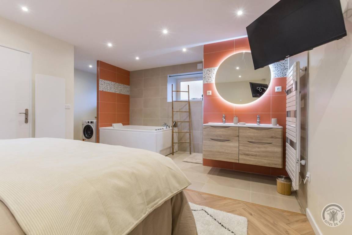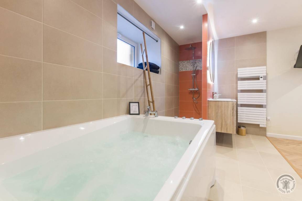 Dieses Dörfchen am Rande der Salzwiesen der Bucht von Mont Saint-Michel ist besonders malerisch. Die kleinen Bauernhäuser mit Blick auf die Weite der Bucht machen es zu einem Paradies für Schafe! Die Herde zieht zweimal täglich am Haus vorbei, um die nur wenige Meter entfernten Auen zu erreichen. Eric, selbst ehemaliger Schafzüchter, kennt diese Lebensweise bestens und wird Ihnen während Ihres Aufenthalts ein unvergessliches Erlebnis bereiten. Mit viel Liebe zum Detail hat er einen ehemaligen Stall in ein gemütliches Ferienhaus verwandelt. Die prächtige Küche aus dunklem Holz mit ihrer Kochinsel öffnet sich zu einem großen Erkerfenster und einer komfortablen Sitzecke. Zum Entspannen lädt der Whirlpool ein, der an das geräumige Schlafzimmer angrenzt.