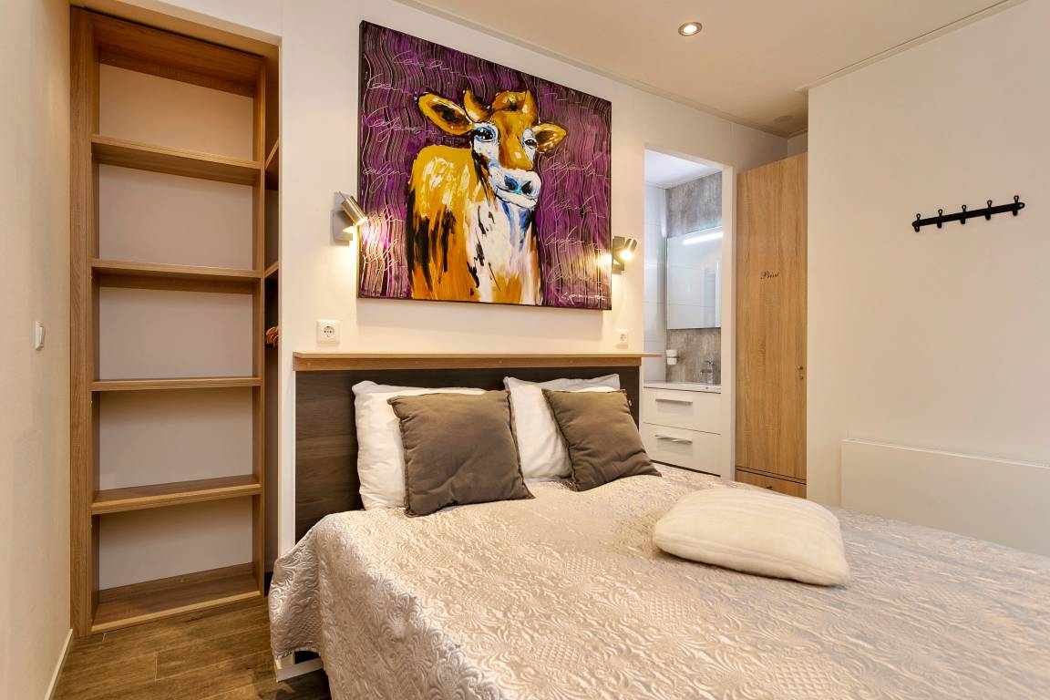 Im heimeligen Schlafzimmer mit Boxspringdoppelbett und direkten Zugang zum Bad und Ankleide, befindet sich außerdem noch ein zweites Schlafzimmer auf der gegenüberliegenden Seite, ideal geeignet für Kinder oder Erwachsene, wo sich das zweite Badezimmer befindet. Über eine Treppe gelangt man dann zur Galerie, dort befindet sich das 3.Schlafzimmer - keine vollständige Stehhöhe (Kinder werden hier ihre Freude haben).