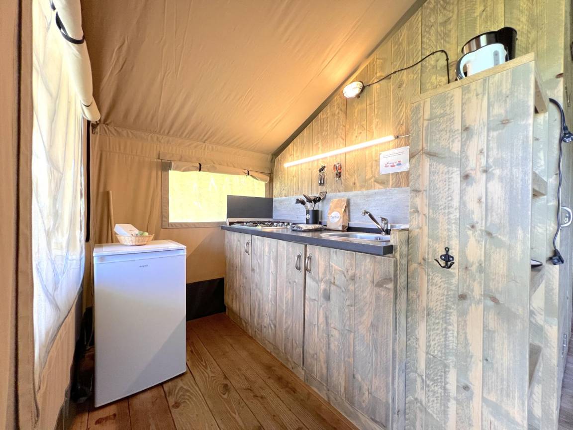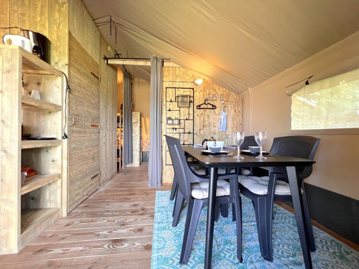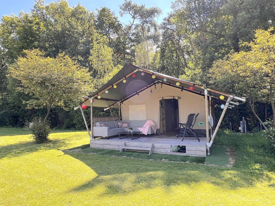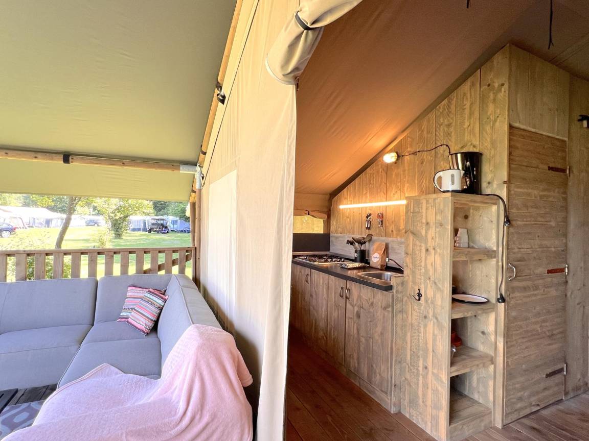 Hausbeschreibung : Entdecken Sie die perfekte Balance zwischen Abenteuer und Komfort und wohnen Sie in einem der Safarizelte auf dem Campingplatz de Vuurkuil. Das Zelt ist sehr geräumig eingerichtet und verfügt über eine Kochnische, ein Badezimmer, eine Schlafkabine mit einem Doppelbett und eine Schlafkabine mit einem Etagenbett. An der Vorderseite des Zeltes befindet sich eine Terrasse, auf der Sie sich mit Blick auf das Campingfeld, auf dem sich auch die anderen 5 Safarizelte befinden, entspannen können