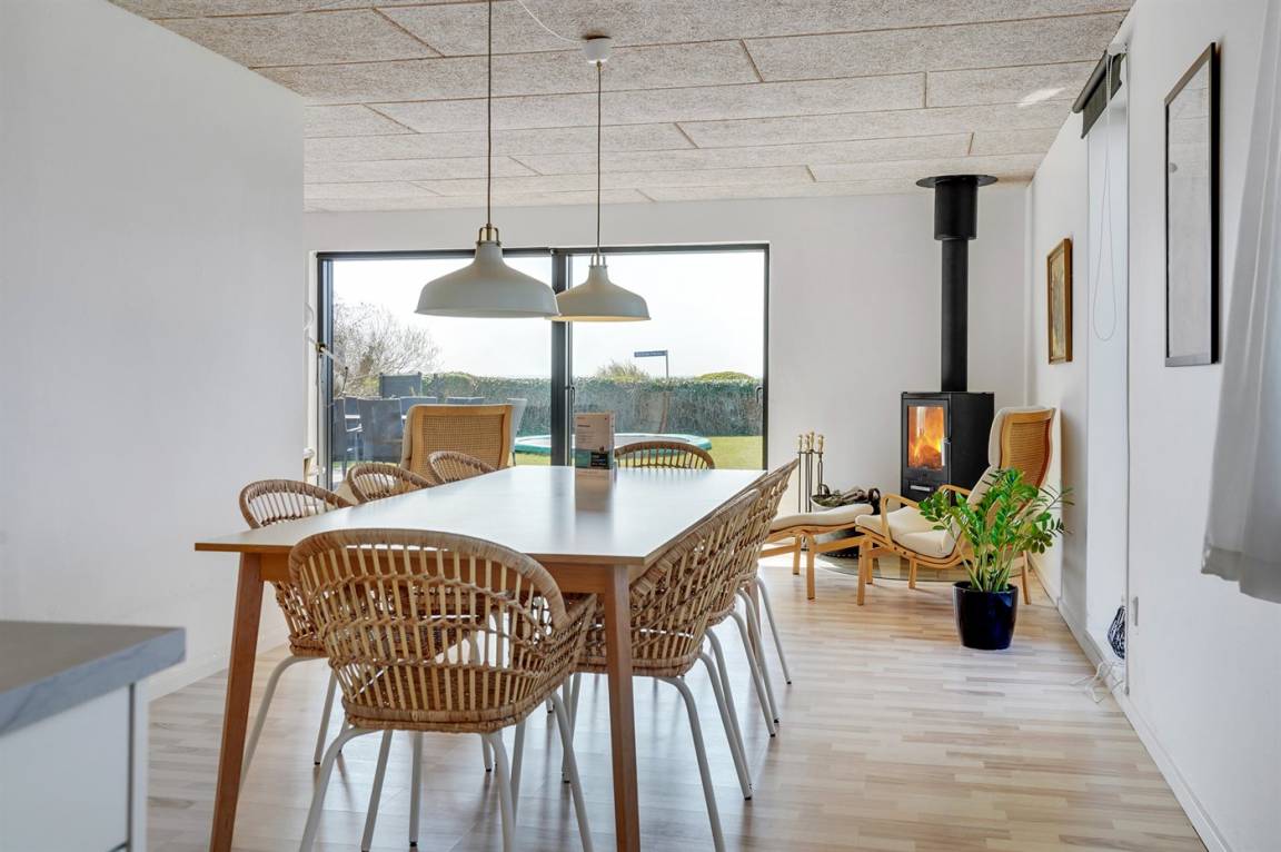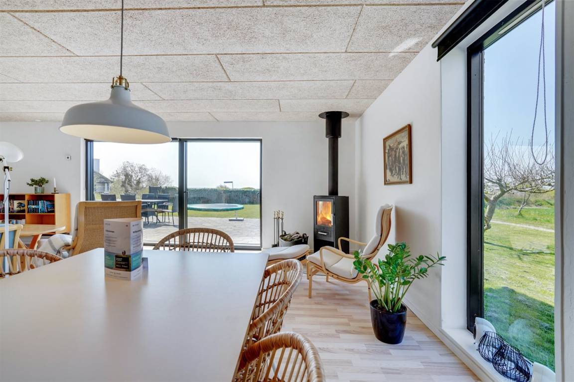 „Advice to other guests: Selve grundetagen er fin, både værelser, toiletter og køkken. Stuen er lille i forhold til, at huset reklameres som brug til 10 personer og idet, at 1. sal er ubrugelig grundet lugten, så sidder man lidt klemt til aftenhyggen, men dog hyggeligt. Garagen er fin med bordtennis og dart. Ophold i forhaven er ikke så hyggeligt, idet grunden er meget åben, og folk kigger ind, når de går forbi, og indkørsel til nabo bagi foregår lige ved siden af sommerhuset på et åbent stykke vej. Der er mange fluer og myrer på den inderste gårdsplads, så ophold der var ikke muligt. Der er mange muldvarpeskud i græsplænen, og der er rigtigt mange myrer generelt på grunden, så man skal ikke spille et havespil, hvor man står stille. Grunden er ujævn, så diverse havespil er svære at gennemføre. Har man brug for at være i sommerhuset for at hygge og blot være sammen, så er det dog et skønt sted, og trampolinen er absolut et plus. Samt den smukke stjernehimmel, som vi så og generelt udsigten og naturen. Og hvis man går et lille stykke ned ad stranden mod venstre væk fra stenene, så er stranden også rigtigt fin.“