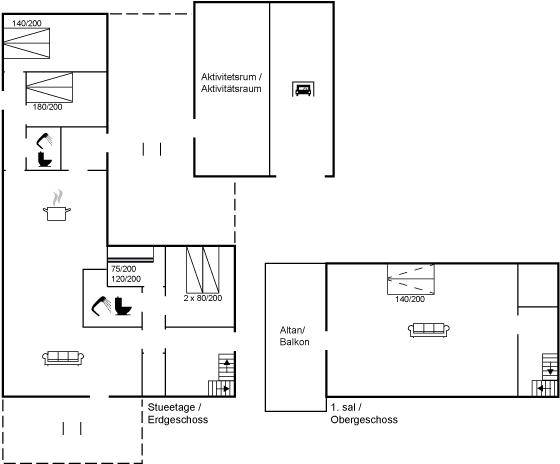EinrichtungDas Ferienhaus eignet sich für 10 Personen sowie 1 Kleinkind bis zu 3 Jahren. 2 der Schlafplätze eignen sich jedoch nur für größere Kinder (4-11 Jahre). Die Ferienunterkunft hat eine Wohnfläche von 215 m², ist 2-stöckig, und wurde 1960 gebaut. 2019 wurde die Ferienunterkunft teilweise renoviert. Es ist erlaubt 1 Haustier mitzubringen. Fußbodenheizung im Wohnzimmer. Die Ferienunterkunft ist mit Waschmaschine ausgestattet. Wäschetrockner. Tiefkühlmöglichkeit mit 90 Liter Nutzinhalt. Es gibt außerdem einen Kaminofen. Für die jüngsten Feriengäste ist 1 Kinderhochstuhl vorhanden.