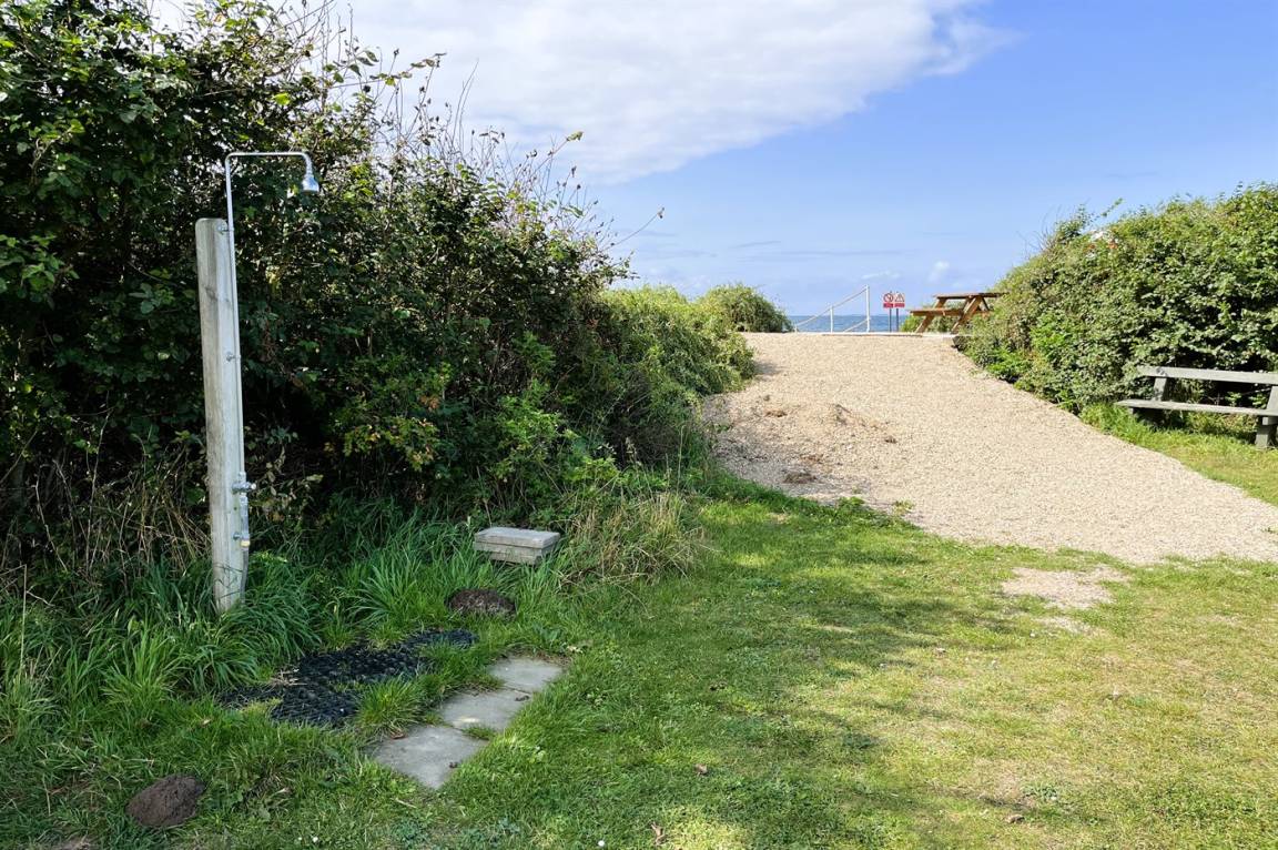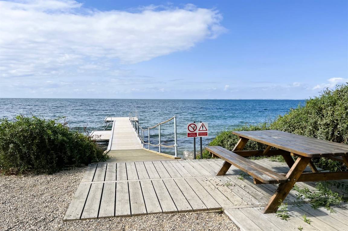 Weniger als 100 m vom Haus entfernt liegt ein Gemeinschaftsbereich mit u. a. Krolfplatz, Spielplatz u. a. m. Am Strand gibt es einen ganzjährig nutzbaren Badesteg sowie eine Dusche, die im Sommerhalbjahr zur Verfügung steht.