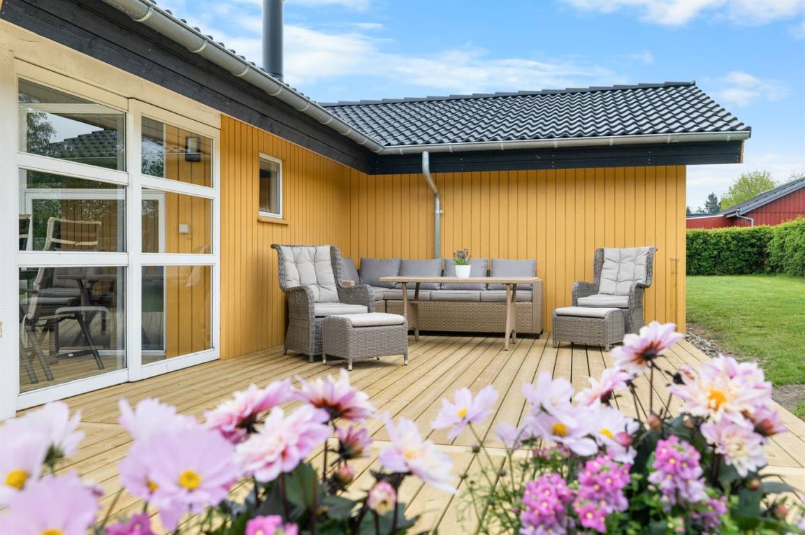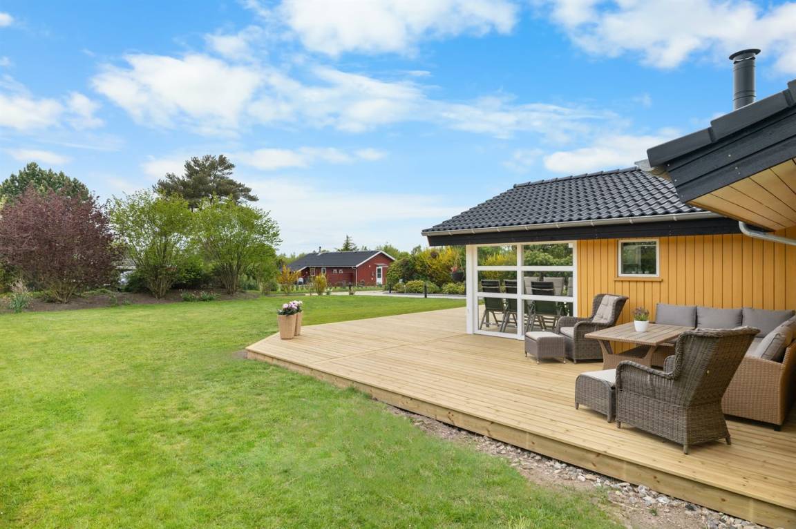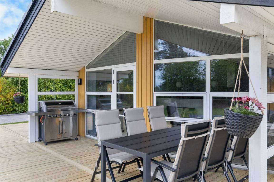 Herrlicher südwestlich ausgerichteter Terrassenbereich und hinter dem Haus eine äußerst gemütliche norwegische Grillhütte, in der man sowohl grillen als auch entspannen kann!