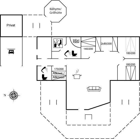 DraußenDie Ferienunterkunft liegt auf einem 1200 m² großen Gartengrundstück. Die Entfernung zum Meer beträgt 875 m. Die nächste Einkaufsmöglichkeit liegt 2700 m entfernt. Es steht ein offenes Terrassenareal zur Verfügung. Außerdem gibt es überdachte Terrasse. Es steht ein Grill zur Verfügung. Es steht ein Carport zur Verfügung. Parkplatz auf dem Grundstück.