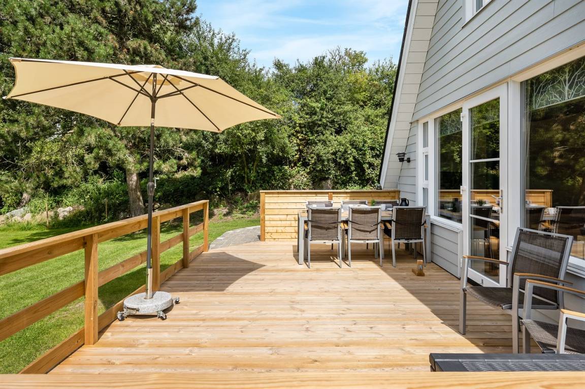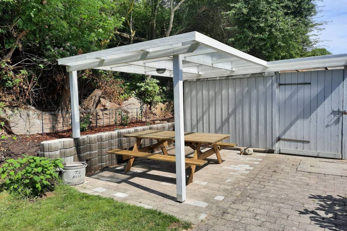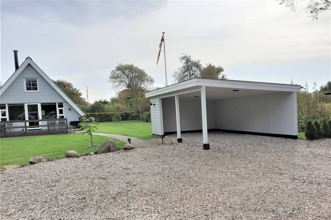 DraußenDie Ferienunterkunft liegt auf einem 1232 m² großen Gartengrundstück. Die Entfernung zum Meer beträgt 350 m. Es gibt einen Badesteg in der Nähe. Die nächste Einkaufsmöglichkeit liegt 7000 m entfernt. In einem Abstand von 900 m gibt es einen Golfplatz. Es steht ein 61 m² Terrassenareal zur Verfügung. Außerdem gibt es 9 m² überdachte Terrasse.Balkon im Obergeschoss. Geräteraum.Lagerfeuerstelle. Es stehen 2 Grills zur Verfügung. Es stehen ein Kugelgrill sowie ein Gasgrill zur Verfügung. Es steht ein Carport zur Verfügung. Parkplatz auf dem Grundstück.