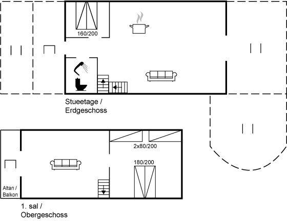 SchlafverhältnisseDie Schlafplätze verteilen sich auf 2 Schlafräume. 4 Schlafplätze in Doppelbetten. 2 Schlafplätze in Einzelbetten.