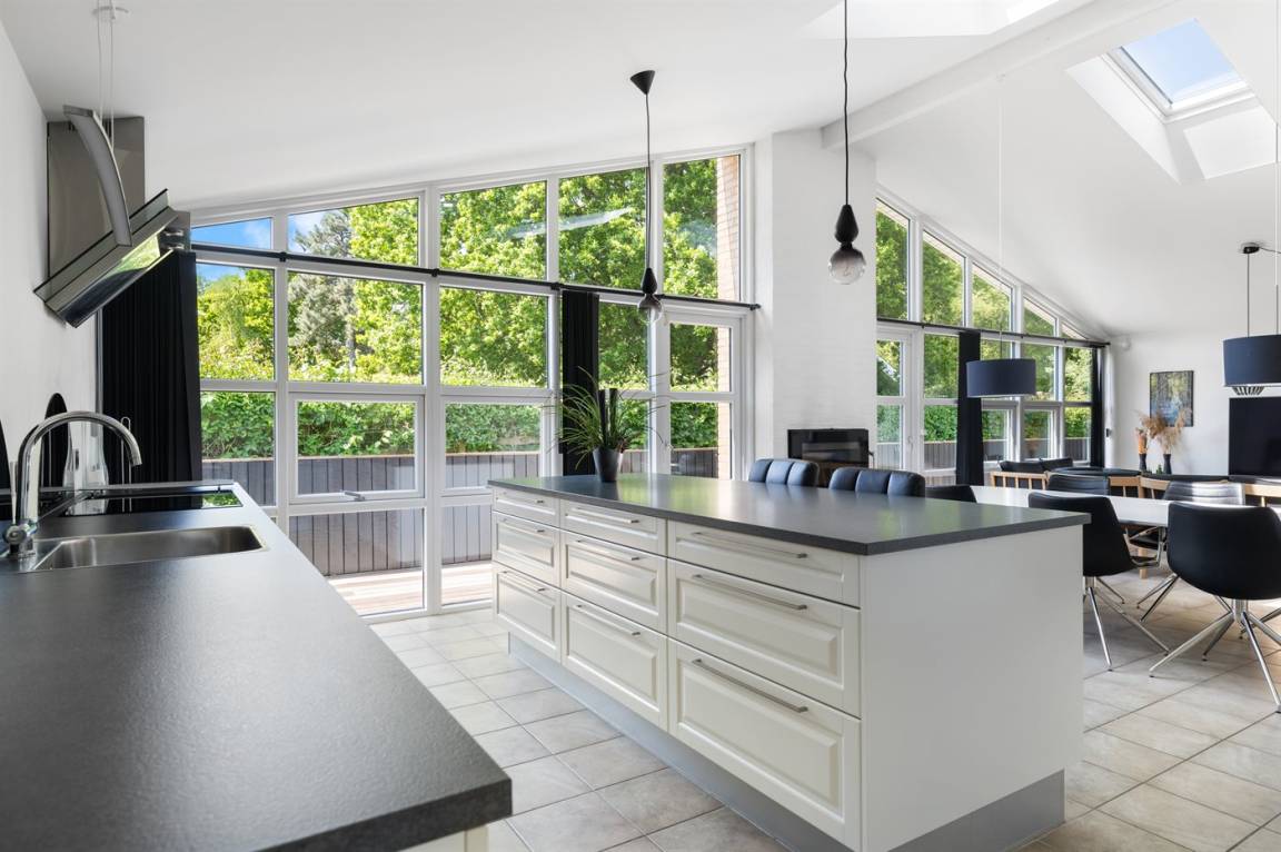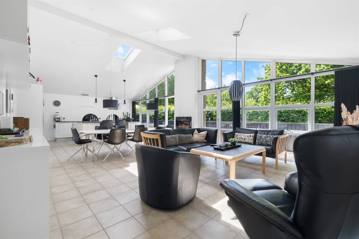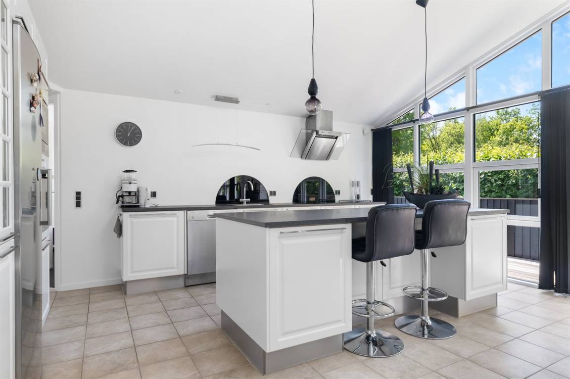 Das Haus ist gut eingerichtet und verfügt über einen großen, offenen und hellen Küchen-Wohnbereich mit offener Dachkonstruktion, sodass die großen, südwestlich ausgerichteten Fenster ein gutes Lichteinfall bieten. Rund um das Haus gibt es mehrere Terrassen, sodass du immer einen Platz in der Sonne finden kannst. Der große Garten bietet viel Platz für Outdoor-Aktivitäten.