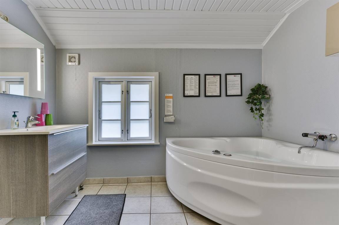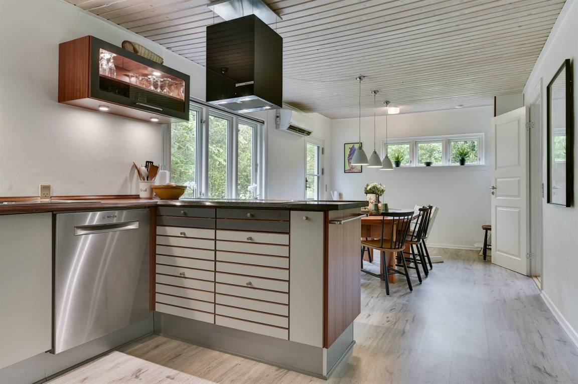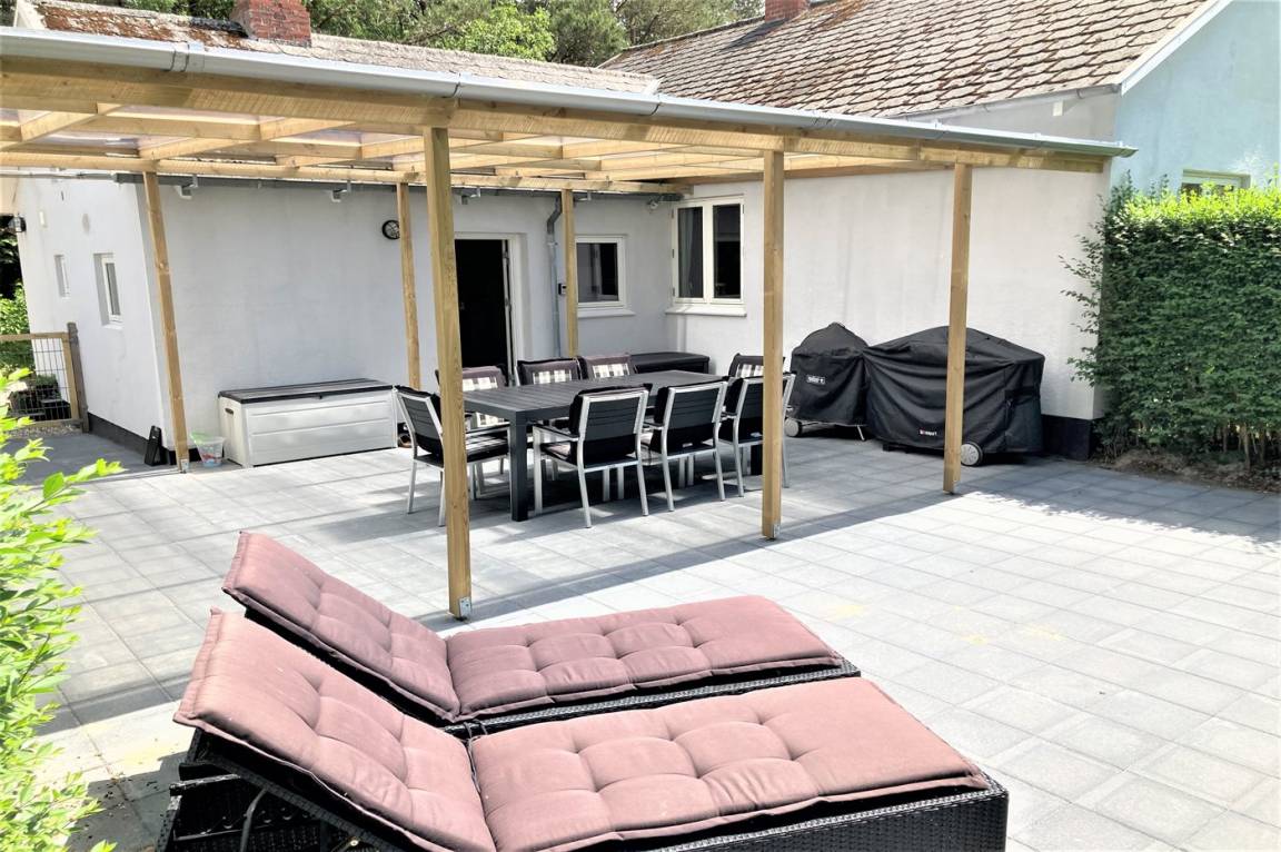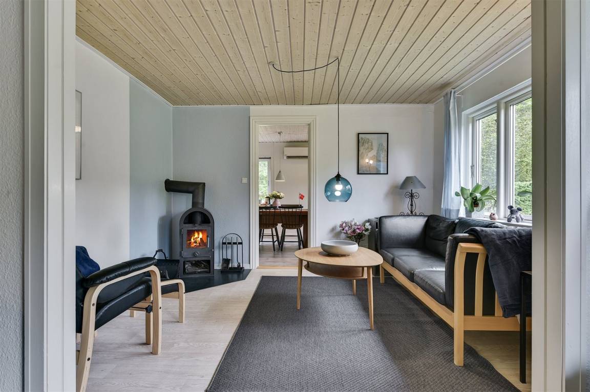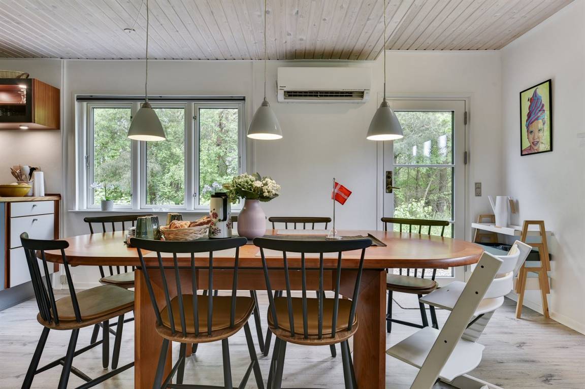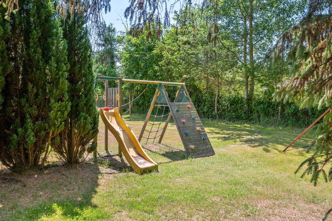 Dieses schöne Ferienhaus liegt auf einem sehr großen Naturgrundstück (4000 m²) in einer sehr kinderfreundlichen Umgebung – etwa 200 m von einem der besten Strände Fünens entfernt. Das Gelände ist teilweise von einem unter Naturschutz stehenden Wald mit einem reichen Tierleben umgeben. Das Haus liegt nur 500 m vom Feriepark Langeland mit vielen Aktivitäten und Minimarkt und 3 km von der Stadt Humble mit Einkaufsmöglichkeiten entfernt. Langeland bietet auch einen Golfplatz an, der nur 8 km entfernt liegt. Das Ferienhaus ist in 2 Häuser unterteilt, von denen das Haupthaus über 3 Schlafzimmer verfügt, wo das eine Zimmer mit Kinder-Etagenbett ausgestattet ist. Das andere Gebäude ist mit einem großen Aktivitätsraum, einer schönen Bar mit Kühlschrank, einer gemütlichen Ecke mit TV und Spielkonsole, 2 Schlafzimmer, ein Badezimmer mit Whirlpool sowie Sauna eingerichtet. Das Haus eignet sich für 8 Personen sowie 2 Kinder bis zu 3 Jahren. Das Haus wurde 1957 gebaut, 1999/2021 teilweise renoviert und hat eine Wohnfläche von 194 m². Es ist erlaubt, 2 Haustiere mitzubringen. Es sind 3 energiesparende Wärmepumpen installiert. An weiterer Austtatung können Waschtrockner, Tiefkühlmöglichkeit mit 100 Liter Nutzinhalt und Kaminofen erwähnt werden. Für die Kleinen gibt es 2 Reisebetten, 2 Kinderhochtstühle und Sportkarre. Die Unterkunft verfügt über eine 46 m² große, offene Terrasse und eine überdachte Terrasse (34 m²) mit Grill, Gartenmöbeln, Sonnenschirm und Liegestühlen. Auf dem Grundstück stehen Schaukel, Rutsche, Trampolin und Fußballtor zur Verfügung. Krocket, Hockey, Petanque und Badminton sind ebenfalls vorhanden. Das Grundstück ist teilweise eingezäunt. Parkmöglichkeit auf dem Grundstück. Im Aktivitätsraum befinden sich folgende Geräte: Billard, Tischtennis, Darts und Tischfußball. Die Küche ist mit Kühlschrank, 4 Kochfeldern, Umluftofen, Kombiofen, Kaffeemaschine und Geschirrspüler ausgestattet. Es gibt 2 Badezimmer, beide mit Fußbodenheizung, Dusche und Toilette. Das eine Badezimmer verfügt außerdem über einen 2-Pers.-Whirlpool und es ist eine große Sauna vorhanden. Ferner stehen 2 TV's, DVD-Player, Radio, Stereoanlage, CD-Player, Nintendo Wii, mindestens 4 deutsche, 1-3 schwedische, 1-3 norwegische, mindestens 4 dänische und mindestens 4 englische Kanäle sowie kabellose Internetverbindung zur Verfügung.