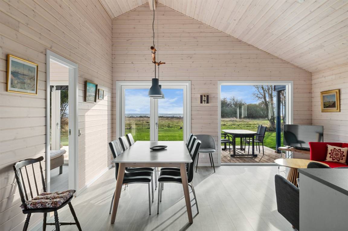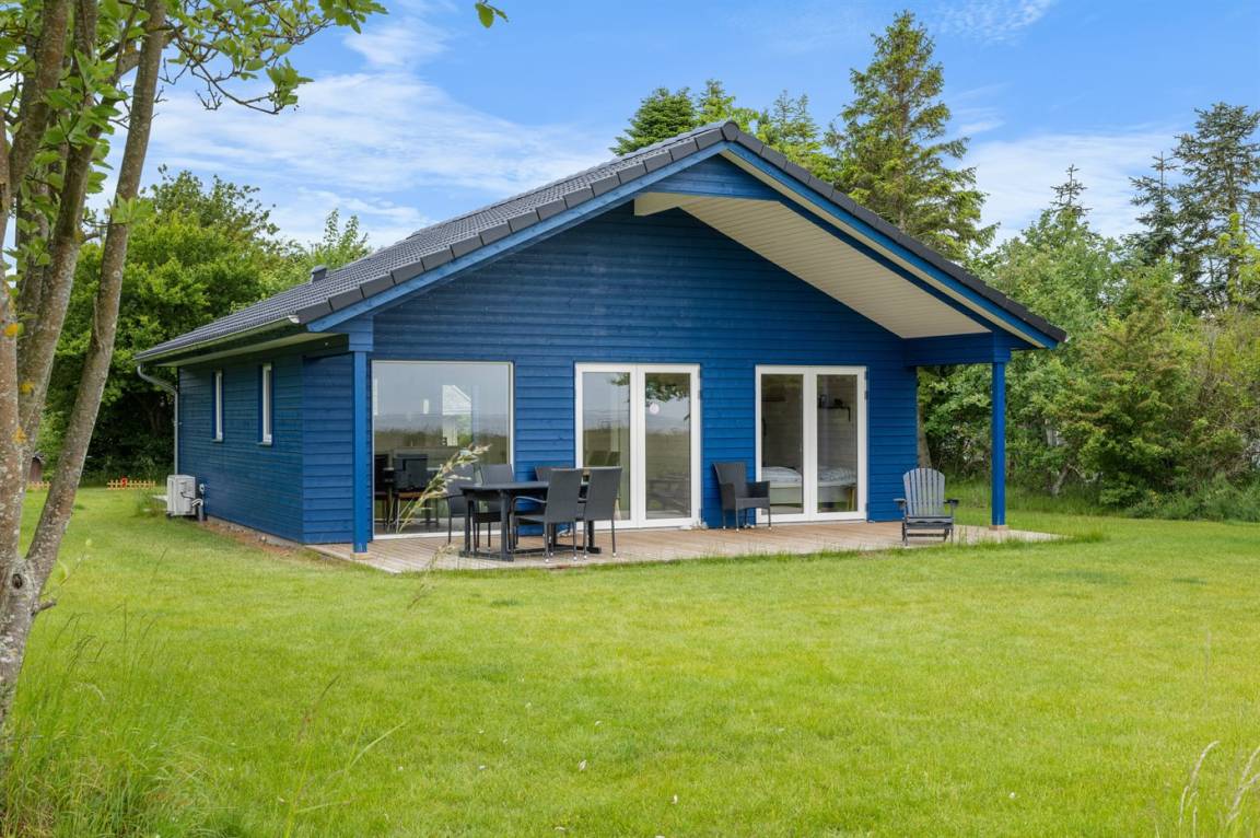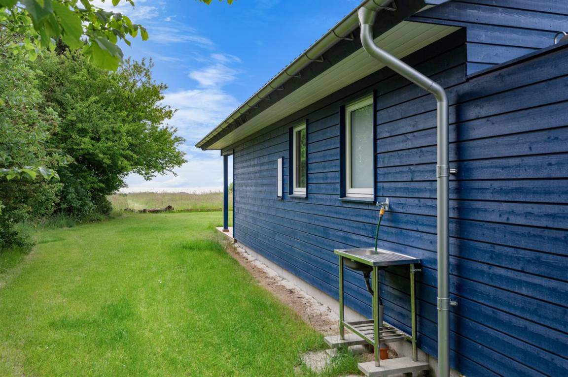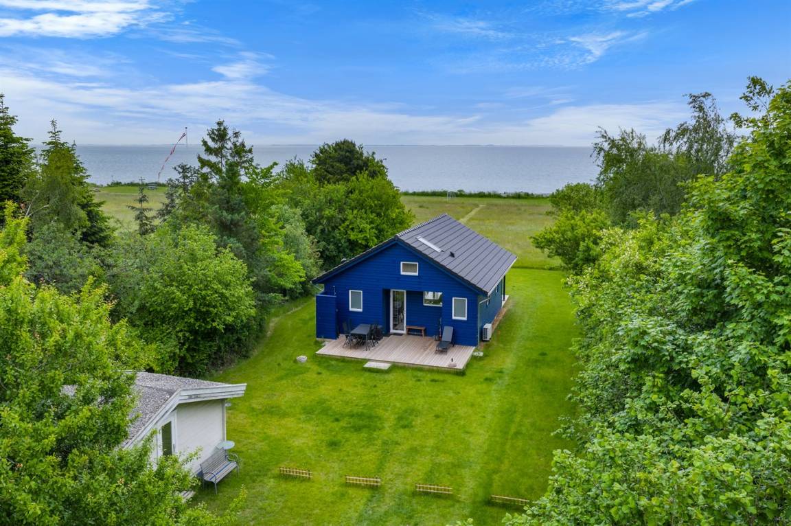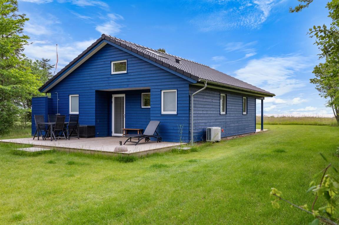 Ein besonders schönes, neu erbautes Ferienhaus (2024) mit einer tollen Lage direkt an einer Grünfläche und am Strand. Vom Haus und der Terrasse aus hat man Ausblick über den Langelandsbelt.