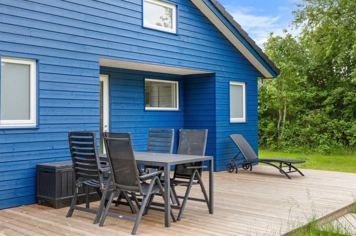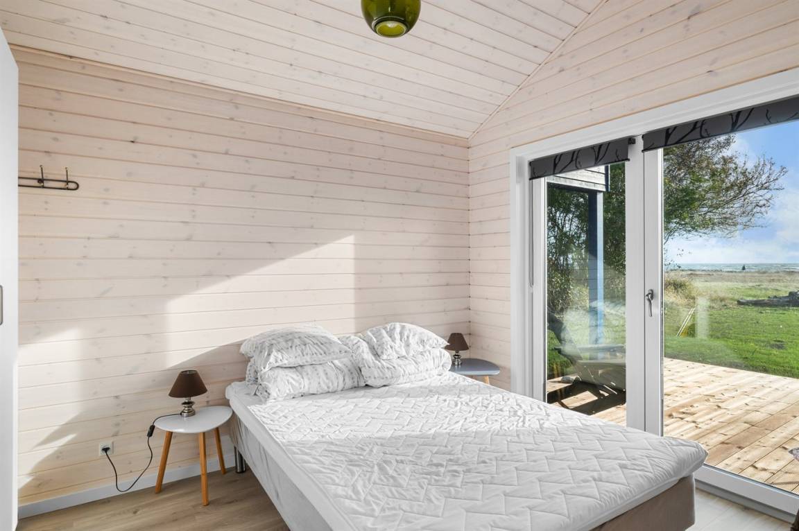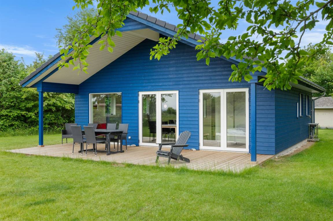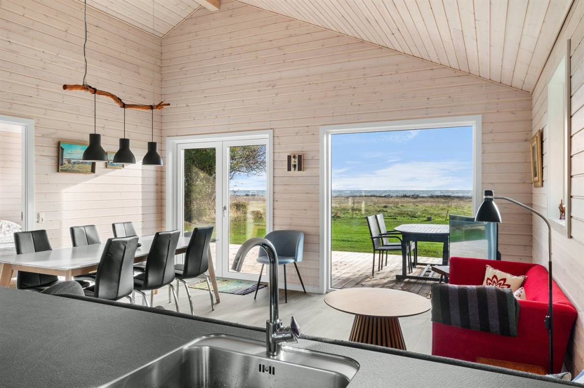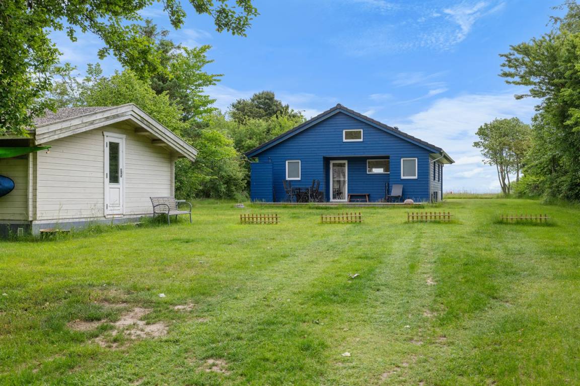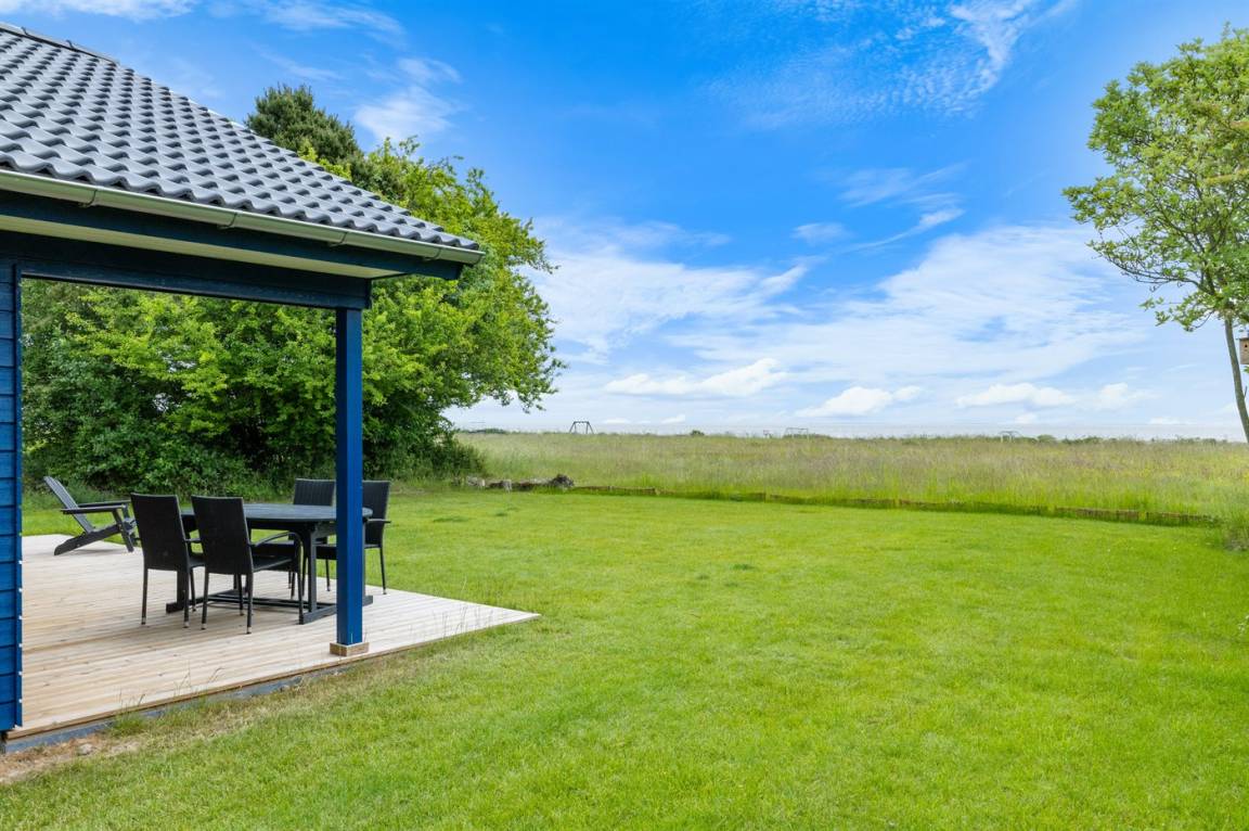 Ein besonders schönes, neu erbautes Ferienhaus (2024) mit einer tollen Lage direkt an einer Grünfläche und am Strand. Vom Haus und der Terrasse aus hat man Ausblick über den Langelandsbelt.