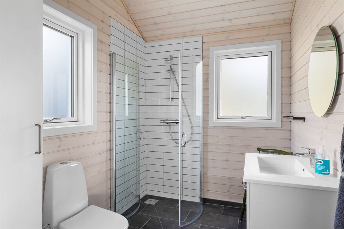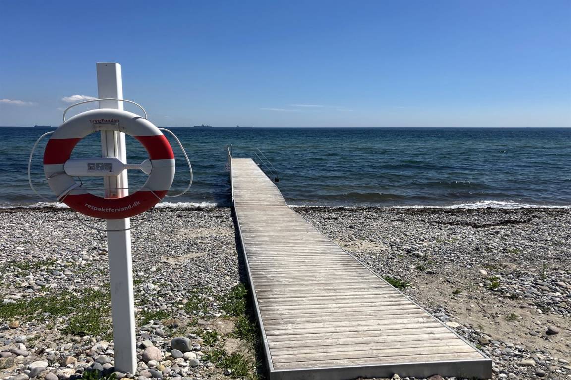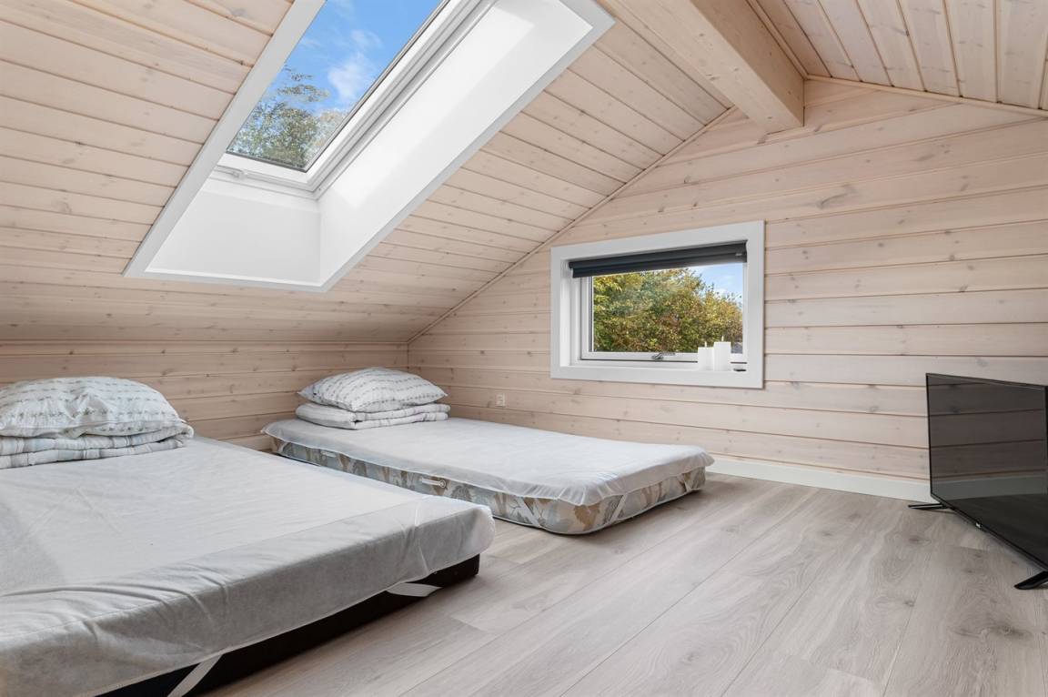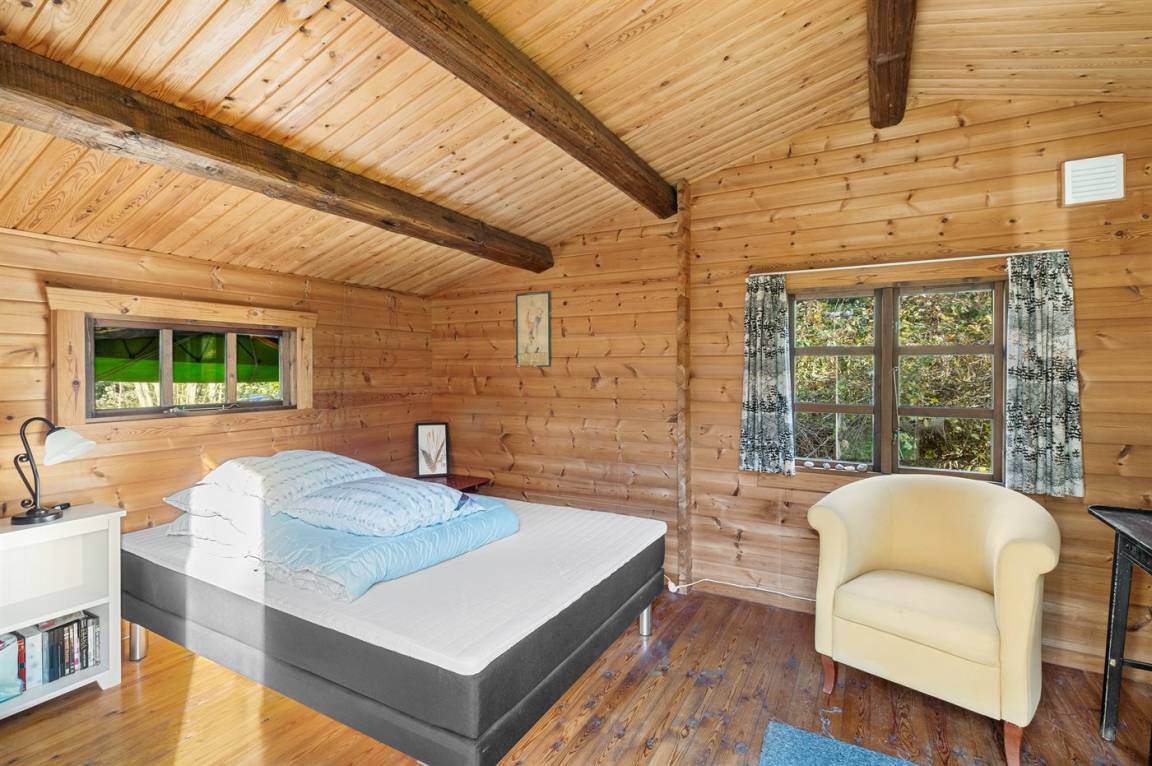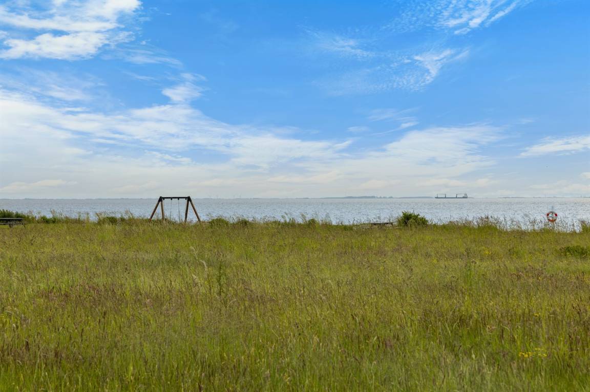 Das Haus liegt ungestört am Ende einer Sackgasse, und vom Garten aus hat man direkten Zugang zu einer Grünfläche und einem Gemeinschaftsbereich mit Spielplatz sowie Tische und Bänke am Strand. Im Sommerhalbjahr gibt es am Strand sowohl einen Badesteg als auch einen Schwimmsteg für Boote. Außerdem gibt es am Strand eine Rampe, von der aus man Boote ins Wasser lassen kann.
