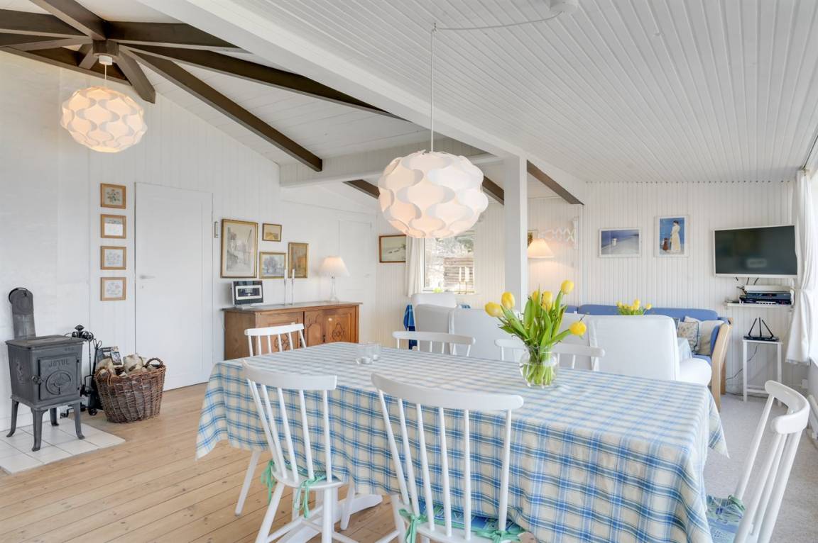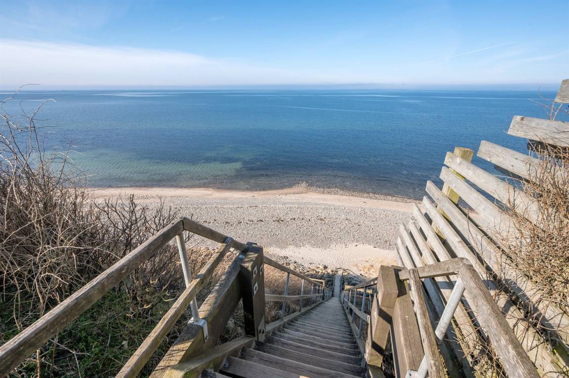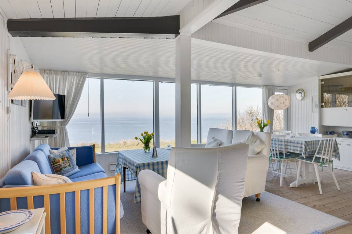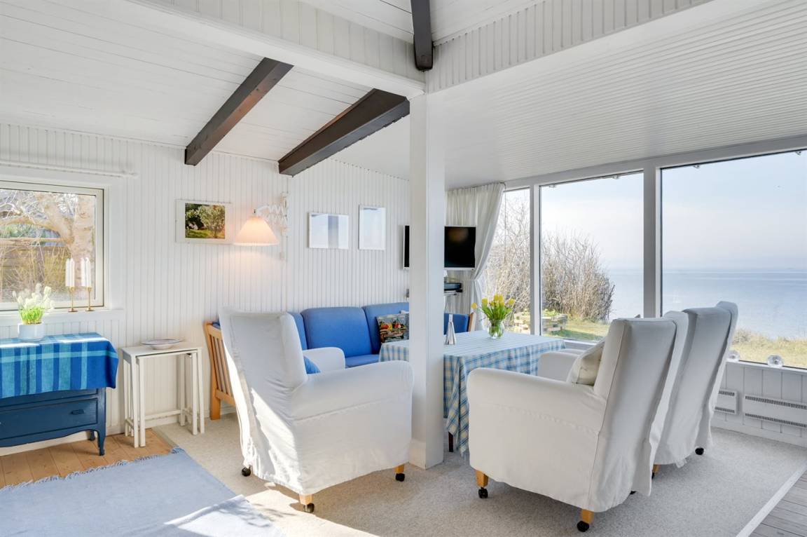 Hier sind Lage und Ausblick einfach erstklassig! Dieses Ferienhaus hat aufgrund seiner hohen Lage einen ganz phantastischen Panoramablick auf das Meer und das sowohl vom Wohnzimmer, vom Essbereich und vom Grundstück aus. Genießen Sie den Blick auf die Segelschiffe sowie den übrigen Schiffsverkehr und folgen Sie dem Wandel des Wetters über dem Meer. Das Haus liegt ungestört am Ende einer Sackgasse. Durch eine kleine Tür im Zaun gelangen Sie auf eine Treppe, die direkt hinunter an den Strand mit guten Bademöglichkeiten führt. Die Einrichtung ist hell und einladend. Das Badezimmer befindet sich im Gästehaus, wo Sie auch das Schlafzimmer mit Doppelbett finden. Es gibt keine Parkmöglichkeit auf dem Grundstück – Sie können jedoch am Seitenstreifen parken. Es gibt viele gute und kinderfreundliche Sandstrände im Feriengebiet, und im Hafen von Lynæs gibt es gute Surfmöglicheiten. Sowohl der Hafen von Lynæs als auch der Hafen von Hundested sind einen Besuch wert hier finden Sie u. a. Cafés und Restaurants. Besuchen Sie auch die Orte Liseleje und Tisvildeleje, die sich in unmittelbarer Nähe befinden.