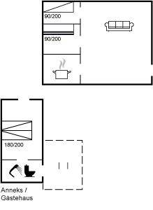 SchlafverhältnisseDie Schlafplätze verteilen sich auf 3 Schlafräume. 2 Schlafplätze in einem Doppelbett.1 Schlafplatz in einem Einzelbett. 2 Schlafplätze in einem Etagenbett. 2 von diesen Schlafplätzen befinden sich im Gästehaus.