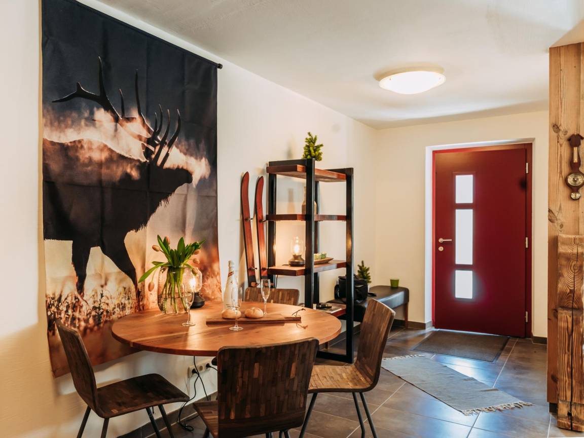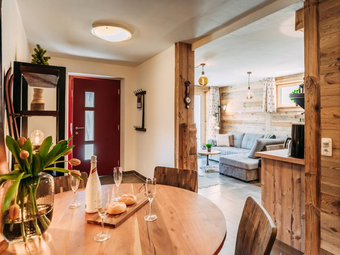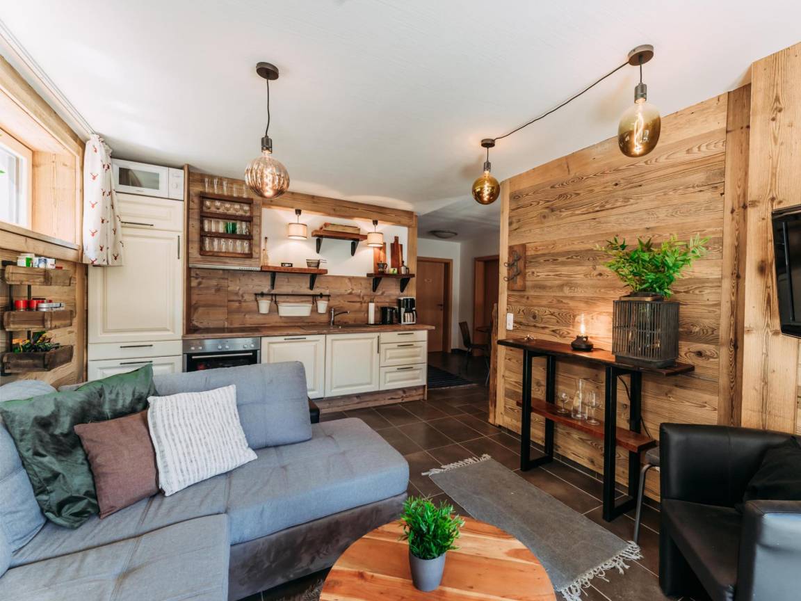Hausbeschreibung : Das Ferienhaus liegt fast direkt an der Piste und nur wenige Gehminuten vom malerischen Dorf Rauris entfernt. Natürlich genießen Wintersportler die ideale Lage dieses Ski-in/Ski-out. Das Ski-in/Ski-out-Ferienhaus wurde im Jahr 2020 komplett renoviert und in 4 moderne Unterkünfte umgewandelt. Diese Unterkunft befindet sich im Erdgeschoss und verfügt über einen eigenen Eingang, ein Wohn-/Schlafzimmer mit TV und eine voll ausgestattete offene Küche mit Essbereich.