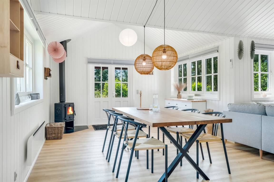 DraußenDie Ferienunterkunft liegt auf einem 1203 m² großen Naturgrundstück. Die Entfernung zum Meer beträgt 8000 m. Die Entfernung zum Fjord beträgt 350 m. Die nächste Einkaufsmöglichkeit liegt 9000 m entfernt. Es steht ein offenes Terrassenareal zur Verfügung. Außerdem gibt es überdachte Terrasse. Außendusche. Parkplatz auf dem Grundstück.