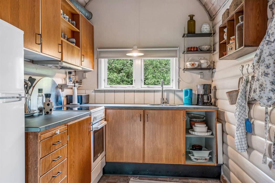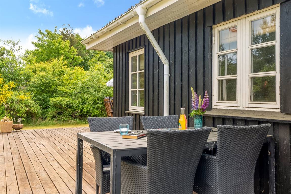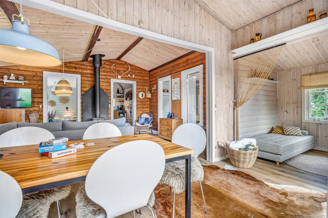 DraußenDie Ferienunterkunft liegt auf einem 1258 m² großen Naturgrundstück. Die Entfernung zum Fjord beträgt 100 m. Es gibt einen Badesteg in der Nähe. Die nächste Einkaufsmöglichkeit liegt 8500 m entfernt. In einem Abstand von 6000 m gibt es einen Golfplatz. Es steht ein offenes Terrassenareal zur Verfügung. Parkplatz auf dem Grundstück.