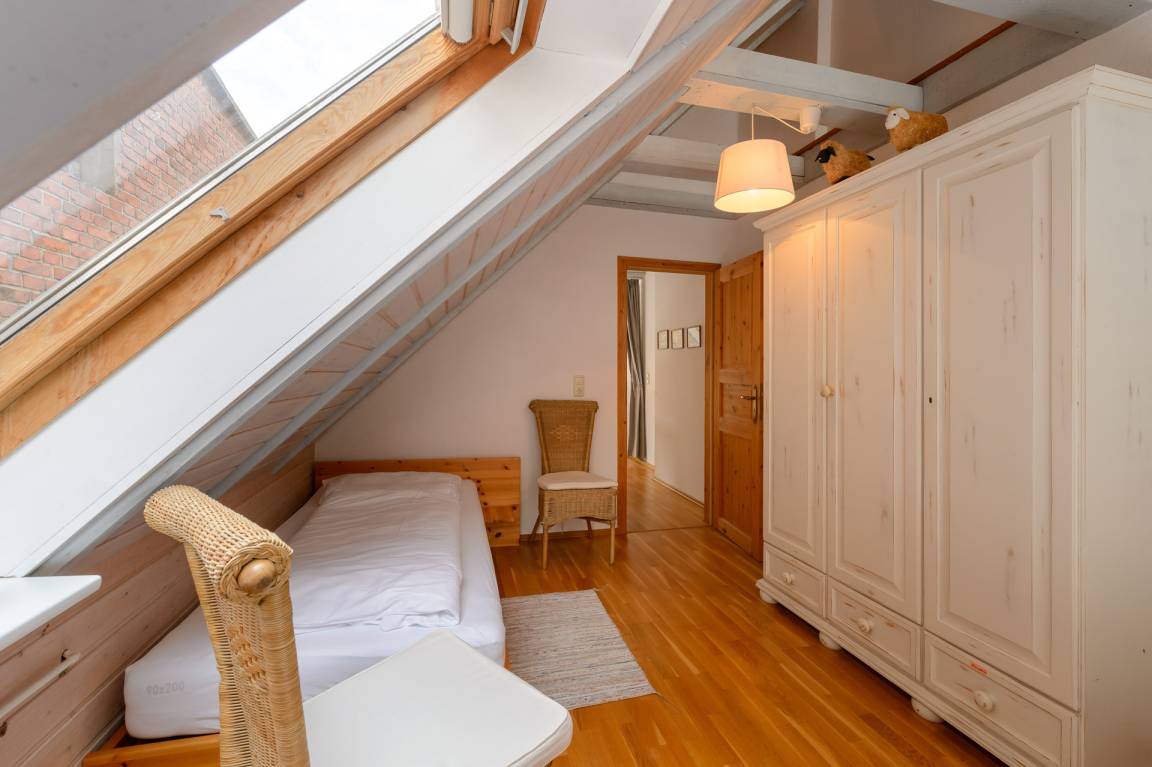 Ankommen, durchatmen, wohlfühlen: Die gemütlich eingerichtete Doppelhaushälfte bietet den idealen Rückzugsort für Paare, Familien oder kleine Freundesgruppen. Denn wenn mehr Platz benötigt wird, kann die zweite Haushälfte "Steuerbord" direkt nebenan einfach mit gebucht werden. Genießen Sie zwei Schlafbereiche - ein offenes Galerieschlafzimmer mit Doppelbett (160x200cm) sowie ein separates Schlafzimmer mit zwei Einzelbetten (je 90x200cm). Die moderne Einbauküche mit Geschirrspüler, SAT-TV im Wohnzimmer und eine eigene Waschmaschine sorgen für entspannten Urlaubskomfort. Draußen erwartet Sie ein kleiner Garten mit Strandkorb und Gartenmöbeln. Ein überdachter Fahrradstellplatz sowie ein Parkplatz direkt am Haus runden das Angebot ab. Bettwäsche, Handtücher, Endreinigung und viele nützliche Kleinigkeiten für Küche und Bad sind bereits im Preis enthalten. Auf Wunsch können Sie Ihr Frühstück ganz bequem im benachbarten Nordsee-Hotel Hinrichsen genießen (nur durch den Hotelparkplatz getrennt). Nach nur ca. 300 Metern zu Fuß erreichen Sie den charmanten Husumer Innenstadtbereich mit Cafés, kleinen Boutiquen, dem malerischen Hafen und dem Husumer Schloss.
