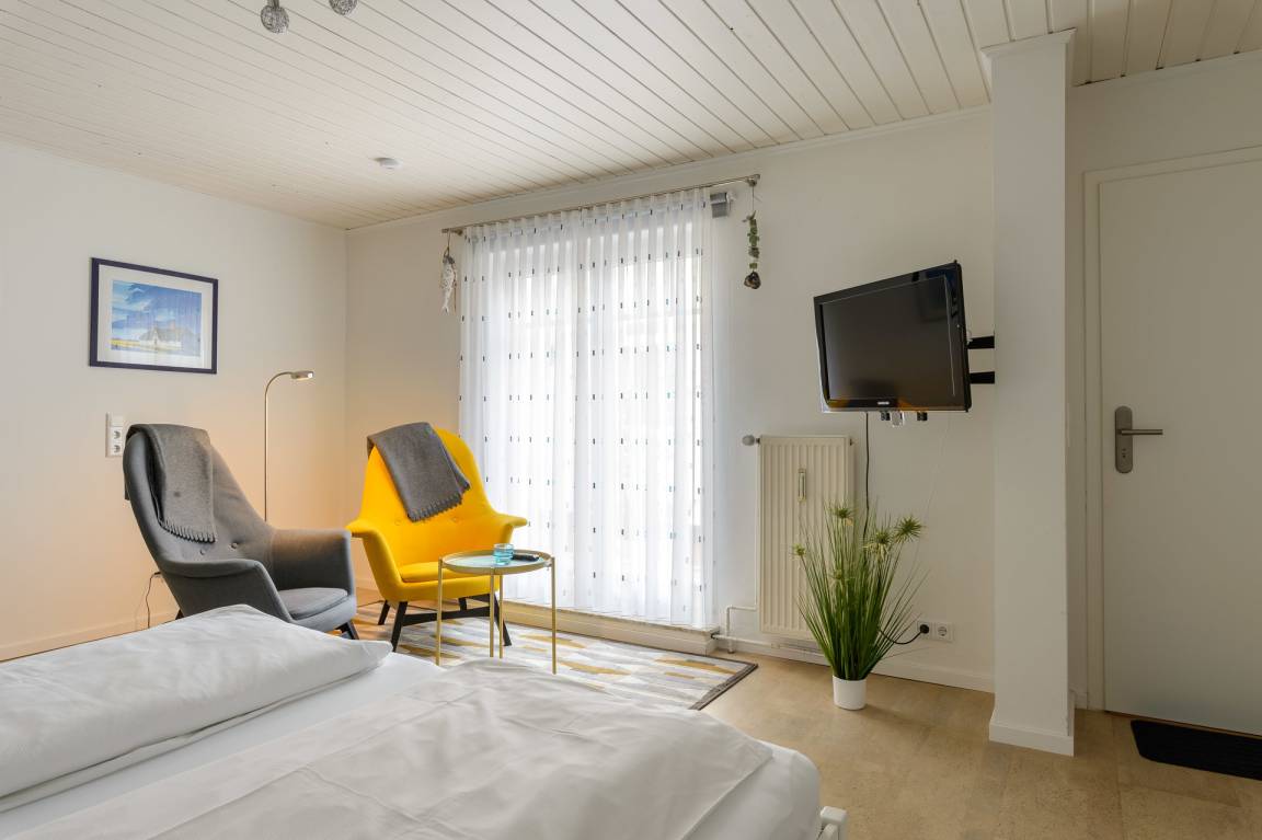 Das Frühstücksbuffet kann optional hinzugebucht werden und erfolgt im nahegelegenen Nordsee-Hotel Hinrichsen (nur durch Hotelparkplatz getrennt). Es kann tageweise oder für den gesamten Aufenthalt gebucht werden. Bitte teilen Sie dem Hotel die gewünschten Frühstückstage vorab mit (Tel. 04841 - 890 70). Vielen Dank.Räume & Aufteilung