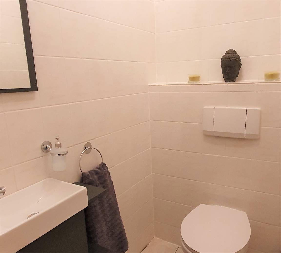 Das Apartment verfügt über 1 Schlafzimmer, 1 modernes Wohnzimmer, eine komplett ausgestattete moderne Küche. Wannenbad und Toilette befinden sich in getrennten Räumen. Für zusätzlichen Komfort bietet die Unterkunft Handtücher und Bettwäsche gegen Aufpreis ( 20€ / Person ).