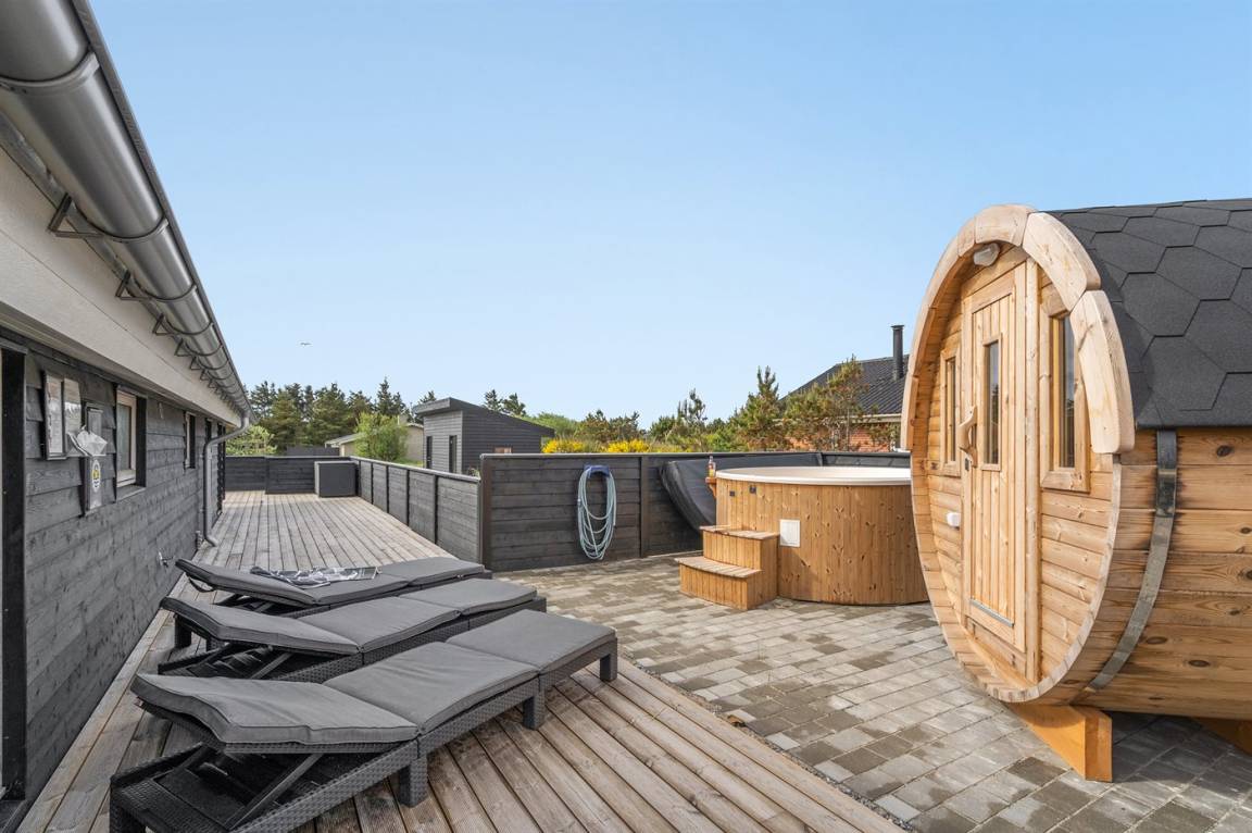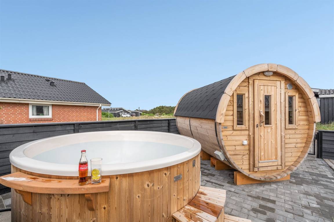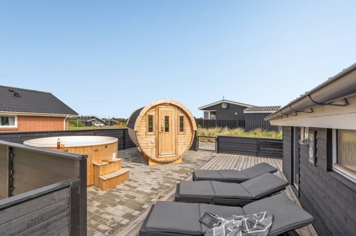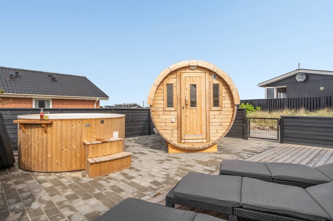 In der herrlichen Dünenlandschaft von Bjerregård liegt dieses schöne Ferienhaus. Das Haus ist 2021 sowohl innen als auch außen neu renoviert und verspricht einen schönen Urlaub, weil man sich im hell und ansprechend eingerichteten Haus sofort wie zu Hause fühlt. Möchte man sich während des Urlaubs etwas Gutes tun, kann man sich im Hot Tub und im Saunafass entpspannen - ein wirklich großes Erlebnis sowohl im Sommer als auch im Winter. Vom Saunafass aus, das über ein Fenster verfügt, kann man außerdem den Sonneuntergang über dem Meer betrachten. Zum Haus gehört eine schöne, 80 m² große, geschlossene Terrasse, auf der Kinder und Hunde sich sicher aufhalten und spielen können.