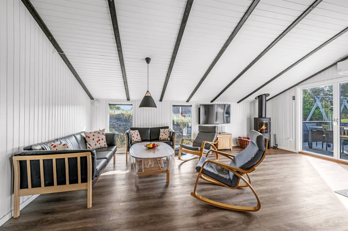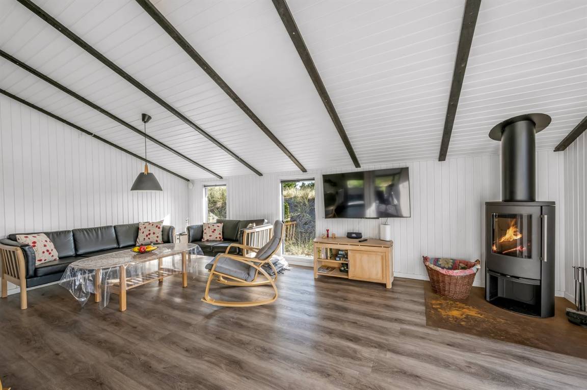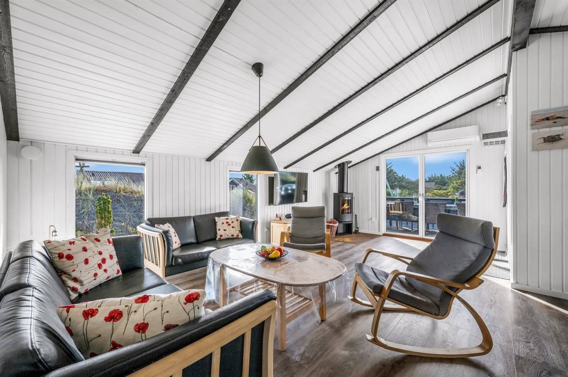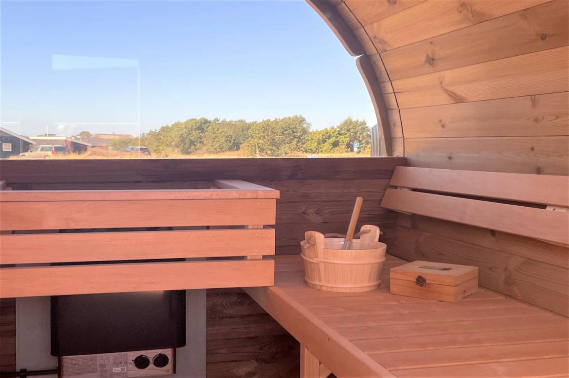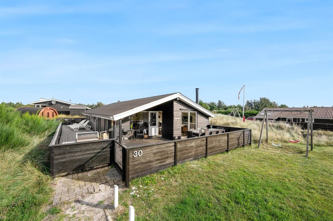 In der herrlichen Dünenlandschaft von Bjerregård liegt dieses schöne Ferienhaus. Das Haus ist 2021 sowohl innen als auch außen neu renoviert und verspricht einen schönen Urlaub, weil man sich im hell und ansprechend eingerichteten Haus sofort wie zu Hause fühlt. Möchte man sich während des Urlaubs etwas Gutes tun, kann man sich im Hot Tub und im Saunafass entpspannen - ein wirklich großes Erlebnis sowohl im Sommer als auch im Winter. Vom Saunafass aus, das über ein Fenster verfügt, kann man außerdem den Sonneuntergang über dem Meer betrachten. Zum Haus gehört eine schöne, 80 m² große, geschlossene Terrasse, auf der Kinder und Hunde sich sicher aufhalten und spielen können.