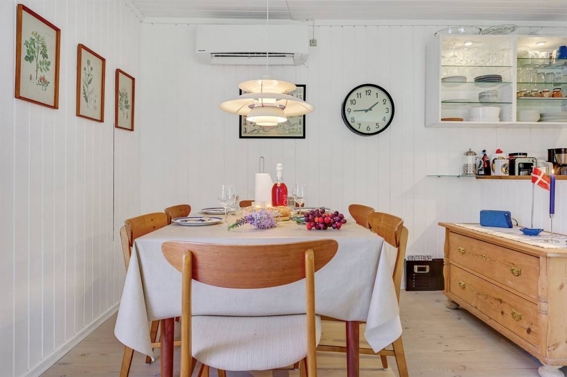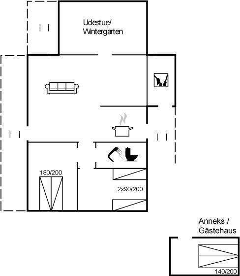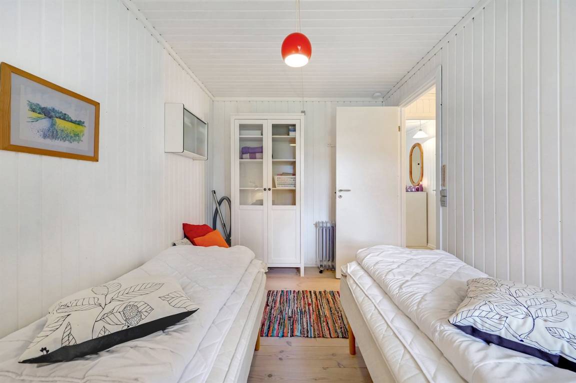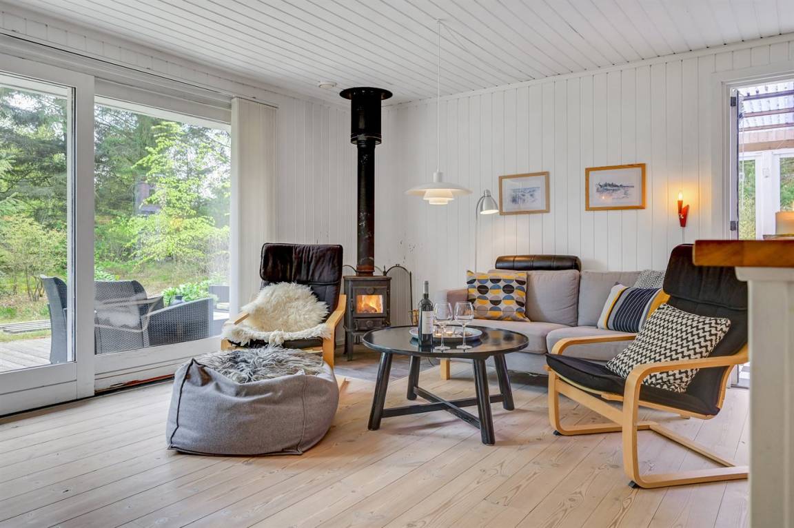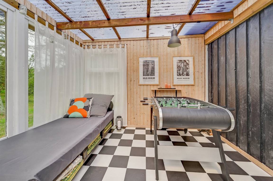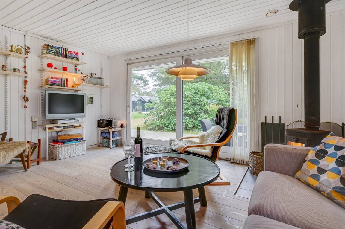 Das Haus enthält ein gemütlich und gut eingerichtetes Wohnzimmer mit Kaminofen mit Kindersicherung, kostenlose Internetverbindung, 30 Fernsehsender (u. a. 10 deutsche, 8 däniche sowie norwegische und schwedische), Wii, Chromecast, Radio und viele Brettspiele. Die Schlafplätze verteilen sich auf 1 Zimmer mit Doppelbett, 1 Zimmer mit 2 Einzelbetten sowie auf ein Gästehaus, das mit Doppelbett eingerichtet ist und vom 1. April bis 31. Septemer für Sie verfügbar. Das nette Ferienhaus ist außerdem mit einer funktionellen Küche mit u. a. Geschirrspüler, einem Badezimmer mit Fußbodenheizung und Duschnische sowie einem hellen Wintergarten mit komfortablen Möbeln, Tischfußball und Daybed eingerichtet. Für die jüngsten Feriengäste stehen Kinderbett und Kinderhochstuhl sowie Sandkasten und Schaukel zur Verfügung. Zum Haus gehört eine große Terrassenfläche, ein Grill sowie zwei Sätze Gartenmöbel. Ein einladendes Ferienhaus, das bei Ankunft ganz selbstverständlich beheizt ist und das 2019 nachgedämmt und mit neuen Energie-Fenstern und einer energiesparenden Wärmepumpe versehen wurde.