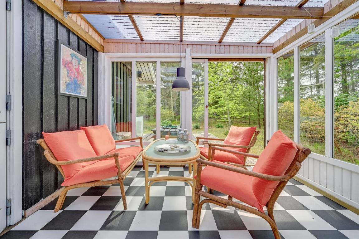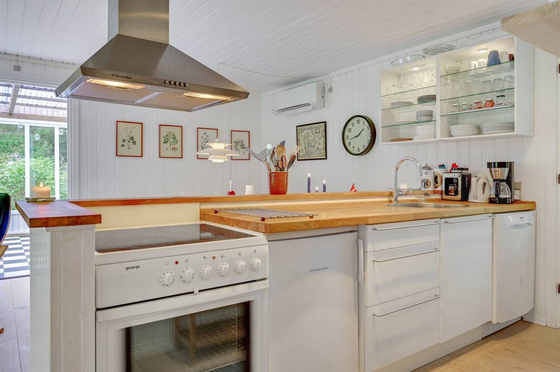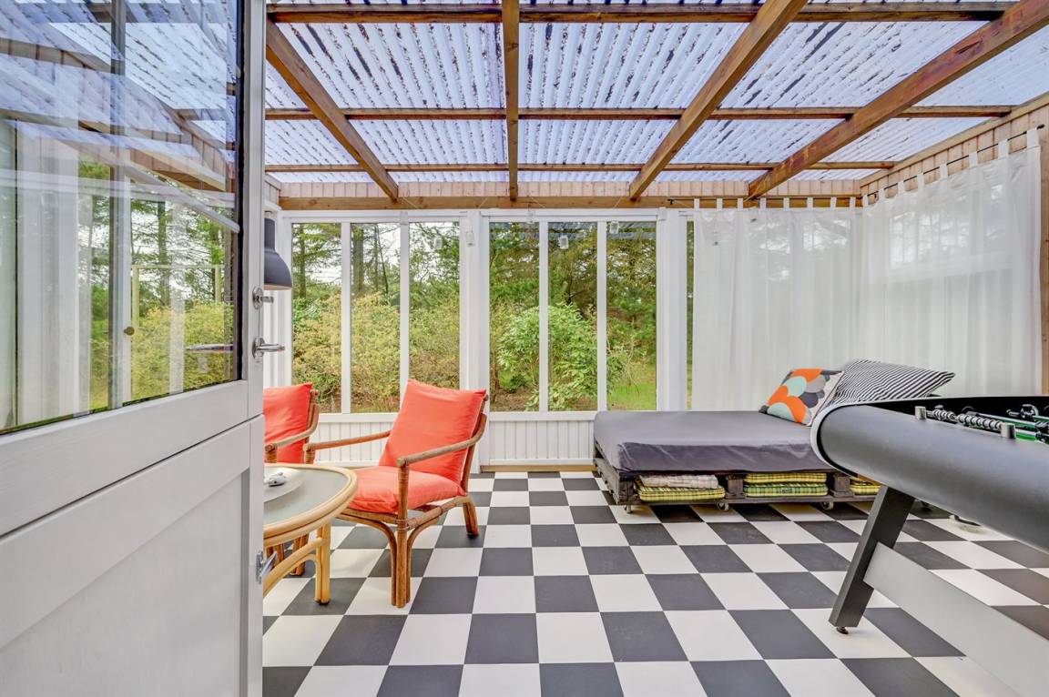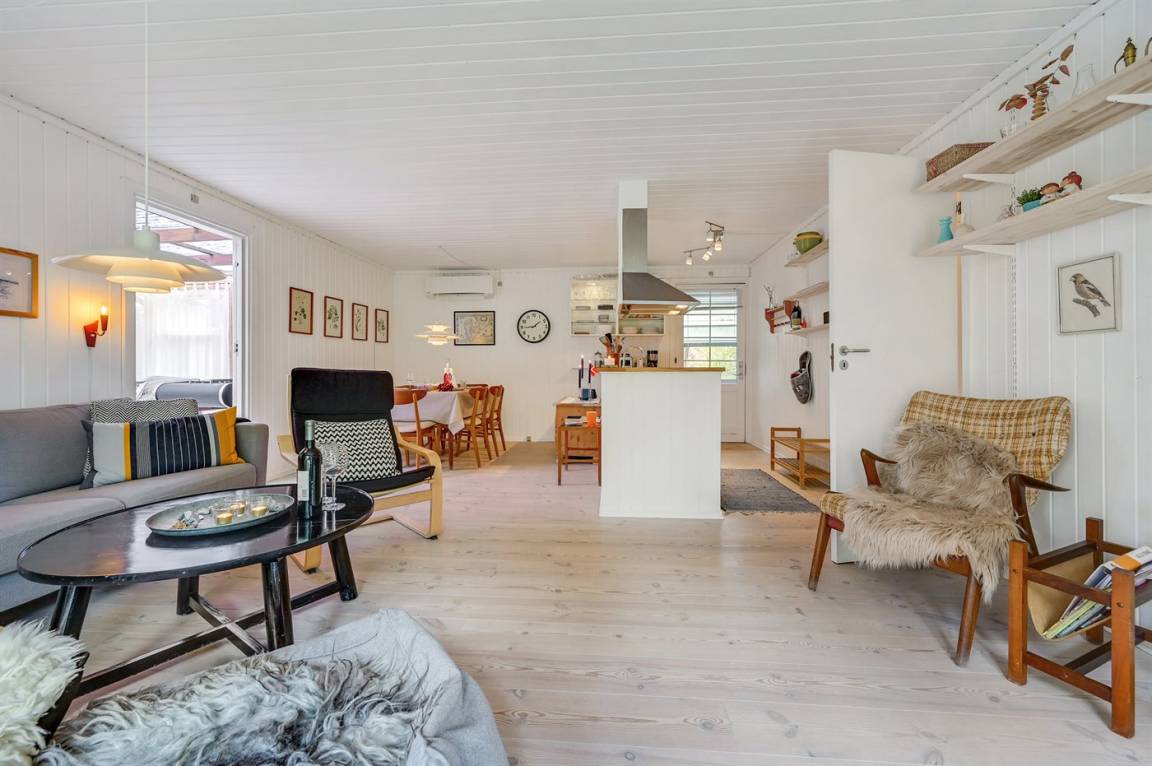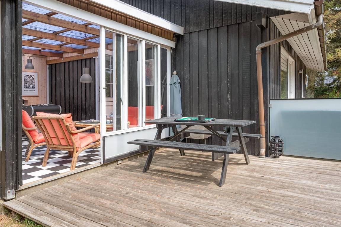 Das Haus enthält ein gemütlich und gut eingerichtetes Wohnzimmer mit Kaminofen mit Kindersicherung, kostenlose Internetverbindung, 30 Fernsehsender (u. a. 10 deutsche, 8 däniche sowie norwegische und schwedische), Wii, Chromecast, Radio und viele Brettspiele. Die Schlafplätze verteilen sich auf 1 Zimmer mit Doppelbett, 1 Zimmer mit 2 Einzelbetten sowie auf ein Gästehaus, das mit Doppelbett eingerichtet ist und vom 1. April bis 31. Septemer für Sie verfügbar. Das nette Ferienhaus ist außerdem mit einer funktionellen Küche mit u. a. Geschirrspüler, einem Badezimmer mit Fußbodenheizung und Duschnische sowie einem hellen Wintergarten mit komfortablen Möbeln, Tischfußball und Daybed eingerichtet. Für die jüngsten Feriengäste stehen Kinderbett und Kinderhochstuhl sowie Sandkasten und Schaukel zur Verfügung. Zum Haus gehört eine große Terrassenfläche, ein Grill sowie zwei Sätze Gartenmöbel. Ein einladendes Ferienhaus, das bei Ankunft ganz selbstverständlich beheizt ist und das 2019 nachgedämmt und mit neuen Energie-Fenstern und einer energiesparenden Wärmepumpe versehen wurde.