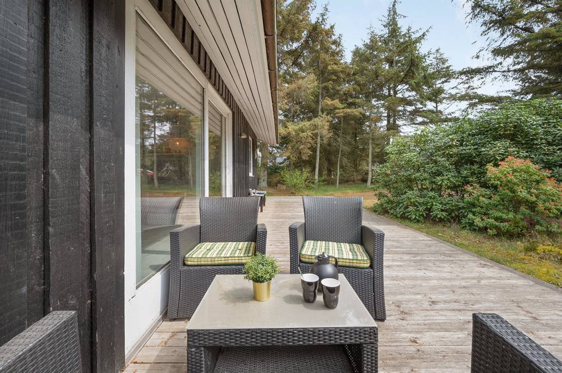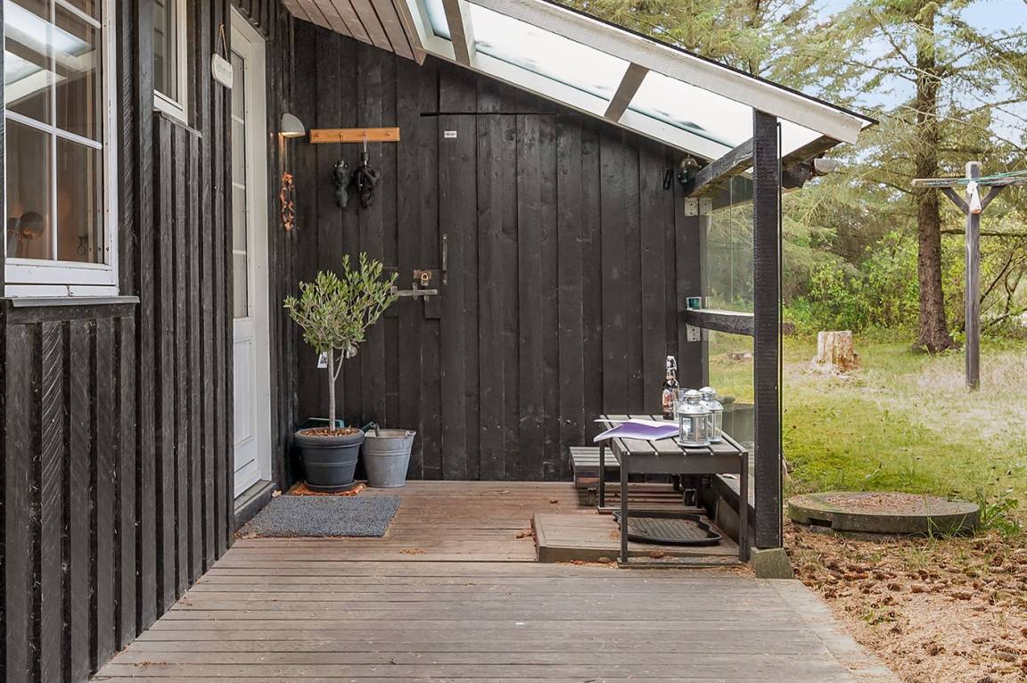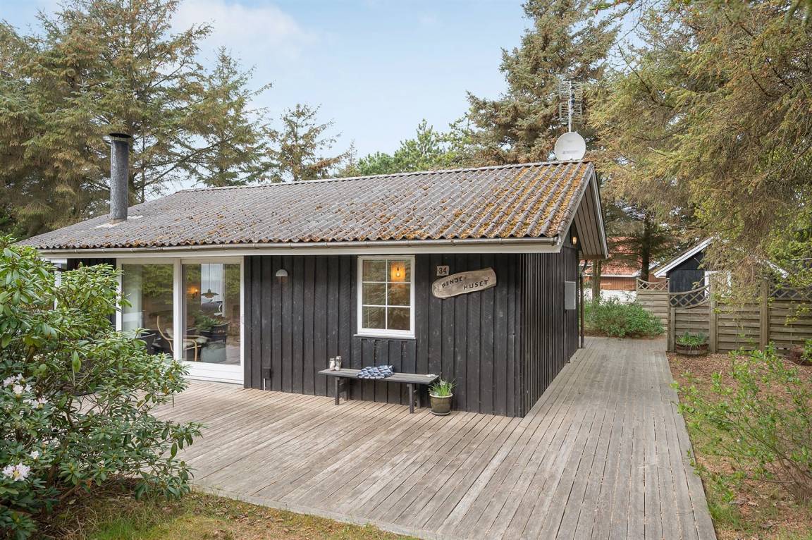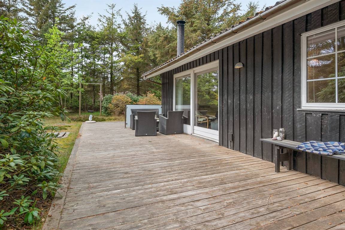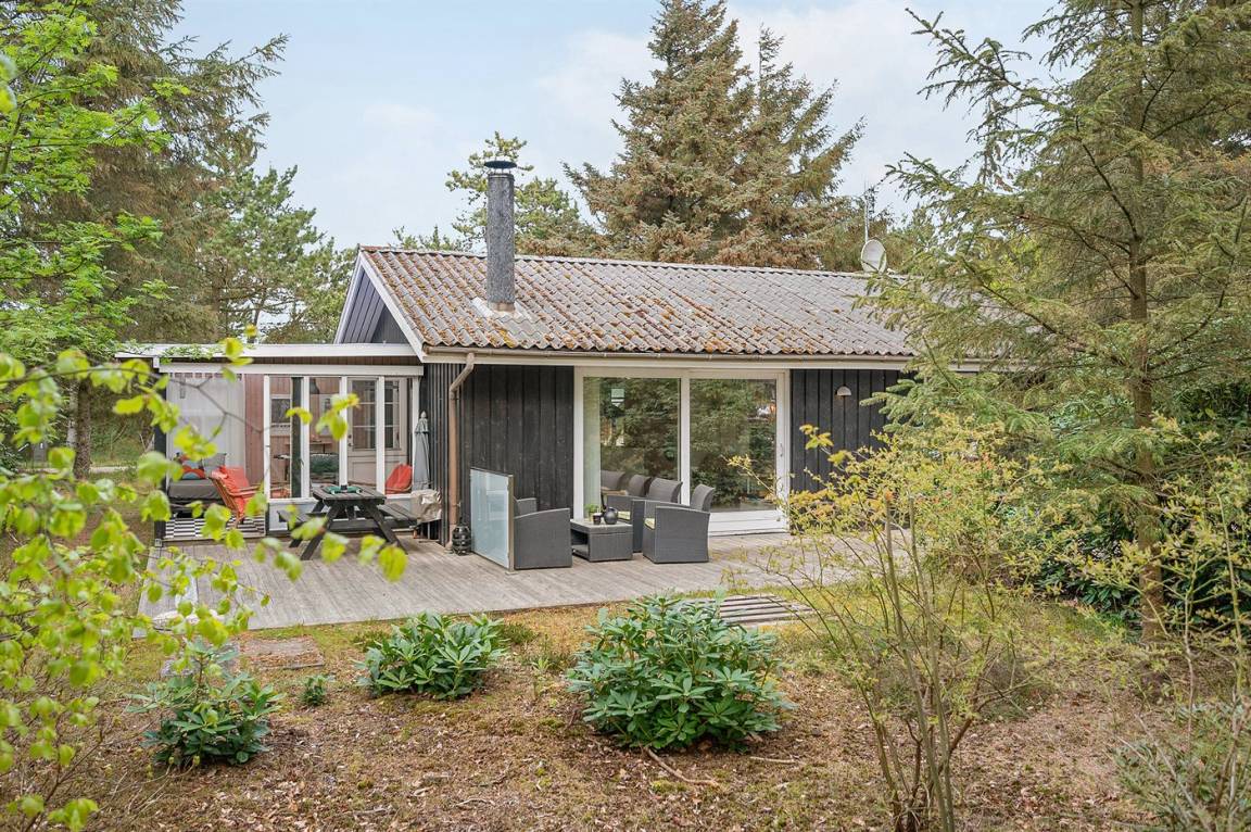 Dieses schöne Ferienhaus mit Wintergarten und Gästehaus liegt auf einem ungestörten Grundstück, das von Birken umgeben ist, welche vor dem Wind und vor neugierigen Blicken schützen. Das Haus liegt direkt am Wald und dem unter Naturschutz stehenden Heidegebiet – nur 700 m von der phantastischen Nordsee, dem Ringkøbing Fjord und dem gut sortierten Kaufmann der Gegend entfernt. Die unikke Lage sowie die kleinen Sprossenfenster und die hellen Holzböden sorgen für das ganze besondere Sommerhaus-Ambiente. Im Gebiet gibt es optimale Möglichkeiten für Badeausflüge, Wandertouren, Angeln, Surfen, Mountainbike fahren, Golf, Shopping und kulinarische Erlebnisse. Mann kan jedoch auch ganz einfach nur die Seele baumeln lassen und die Sonne genießen….