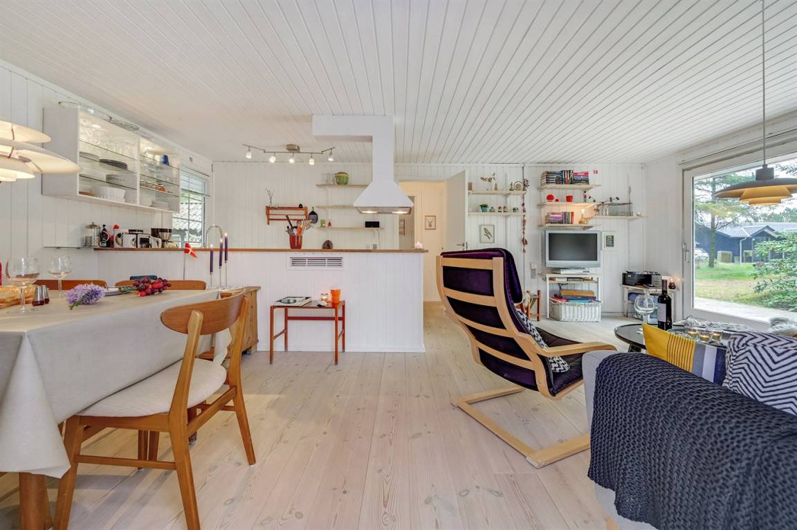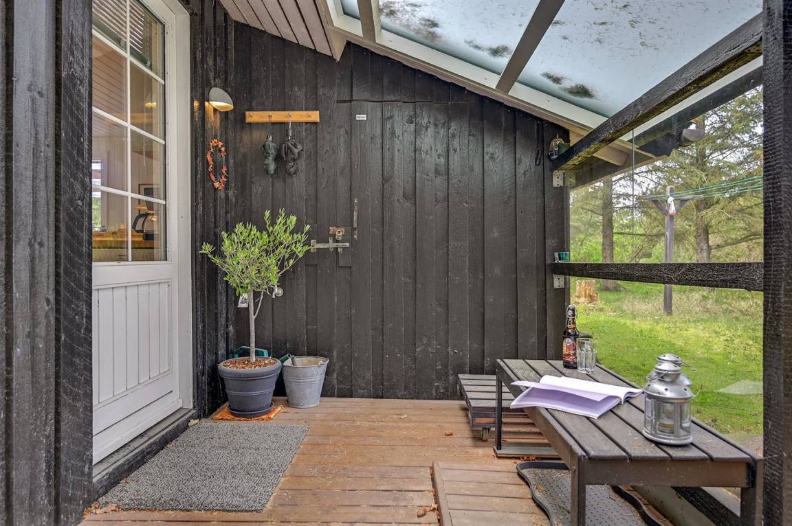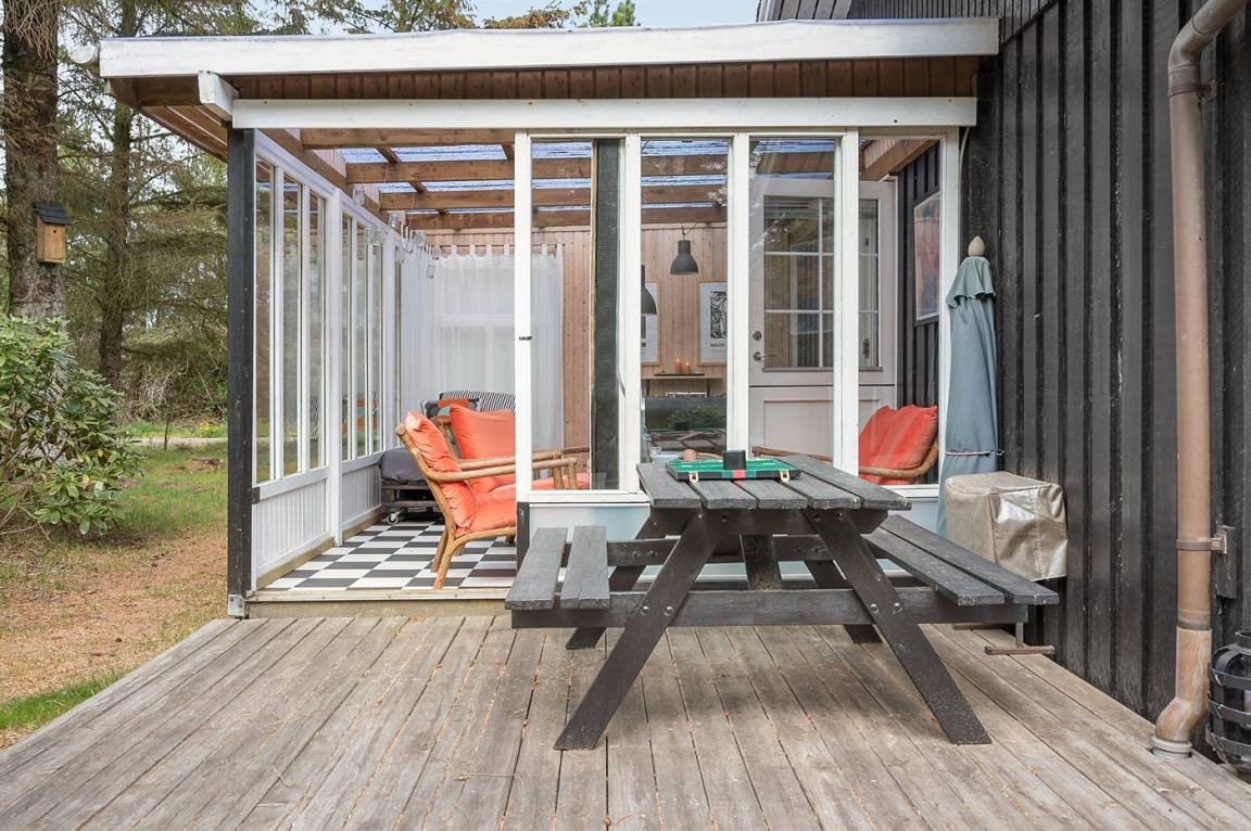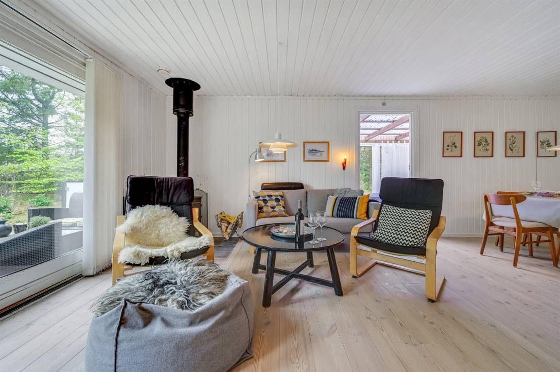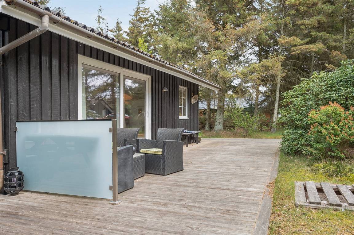 Dieses schöne Ferienhaus mit Wintergarten und Gästehaus liegt auf einem ungestörten Grundstück, das von Birken umgeben ist, welche vor dem Wind und vor neugierigen Blicken schützen. Das Haus liegt direkt am Wald und dem unter Naturschutz stehenden Heidegebiet – nur 700 m von der phantastischen Nordsee, dem Ringkøbing Fjord und dem gut sortierten Kaufmann der Gegend entfernt. Die unikke Lage sowie die kleinen Sprossenfenster und die hellen Holzböden sorgen für das ganze besondere Sommerhaus-Ambiente. Im Gebiet gibt es optimale Möglichkeiten für Badeausflüge, Wandertouren, Angeln, Surfen, Mountainbike fahren, Golf, Shopping und kulinarische Erlebnisse. Mann kan jedoch auch ganz einfach nur die Seele baumeln lassen und die Sonne genießen….