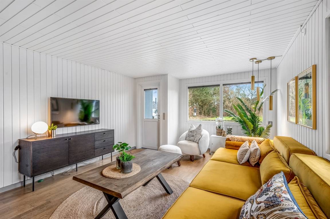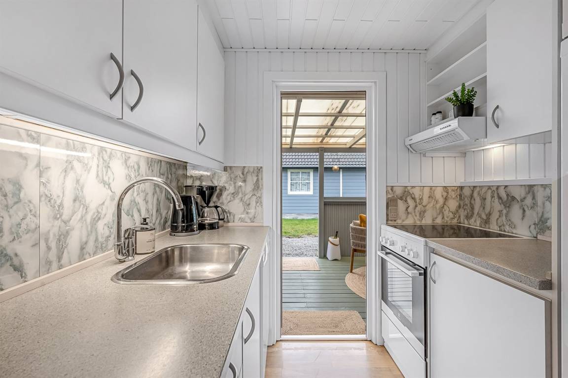 DraußenDie Ferienunterkunft liegt auf einem 1251 m² großen Naturgrundstück. Die Entfernung zum Meer beträgt 1000 m. Die Entfernung zum Fjord beträgt 700 m. Die nächste Einkaufsmöglichkeit liegt 200 m entfernt. Es steht ein offenes Terrassenareal zur Verfügung. Zutritt zu einem Wintergarten. Geräteraum. Schaukel. Sandkasten. Außensauna. Außendusche. Parkplatz auf dem Grundstück.