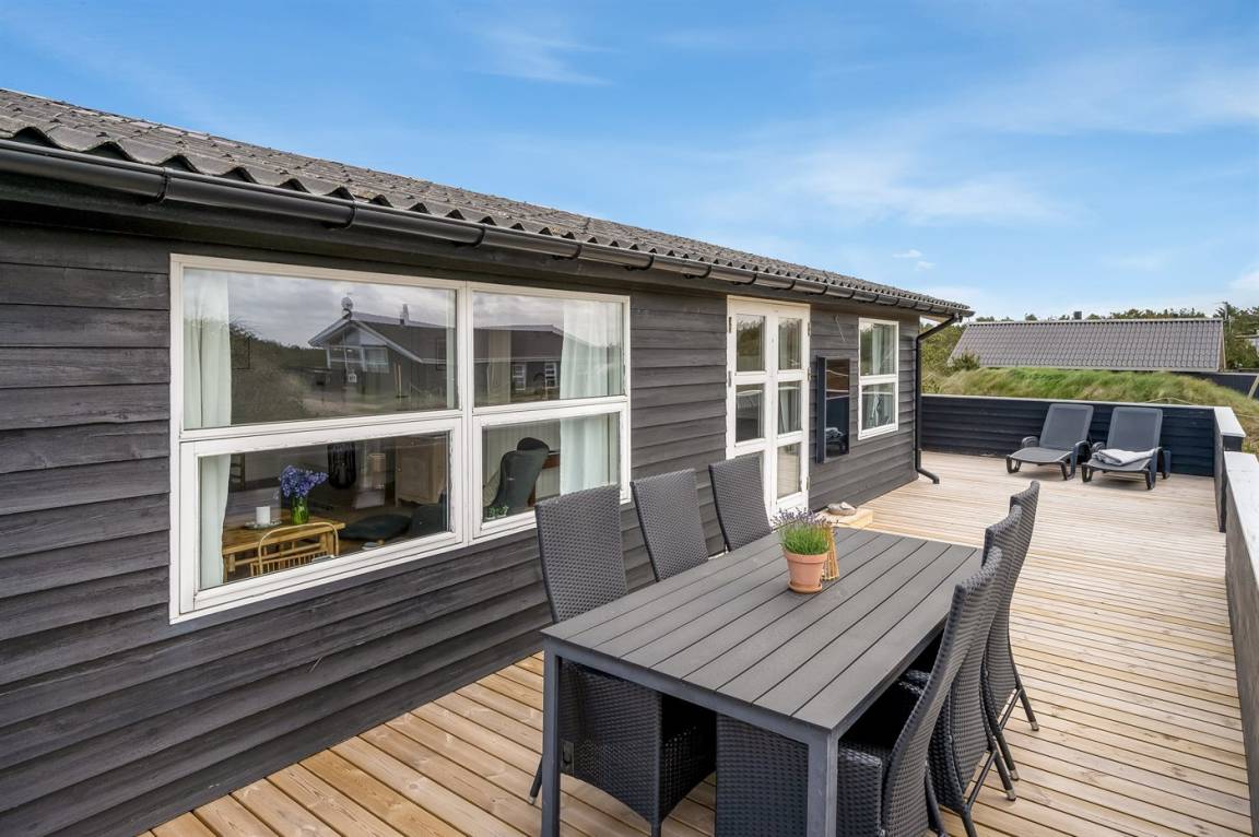 Ein gut gelegenes und hell eingerichtetes Ferienhaus – laufend renoviert. Das Haus hat eine attraktive Lage auf einem Dünengrundstück, dicht an großen Freiflächen, am Strand und an den Dünen. Zum Haus gehört ein großes, offenes Terrassenareal mit Gartenmöbeln.