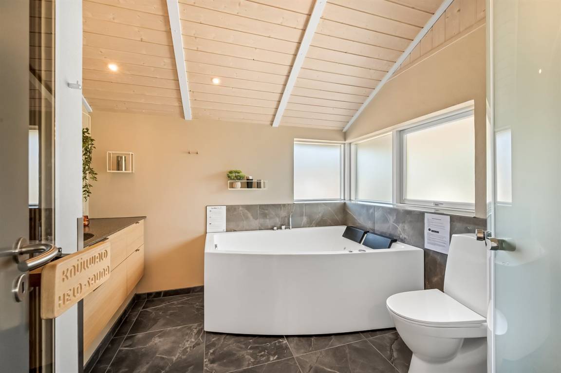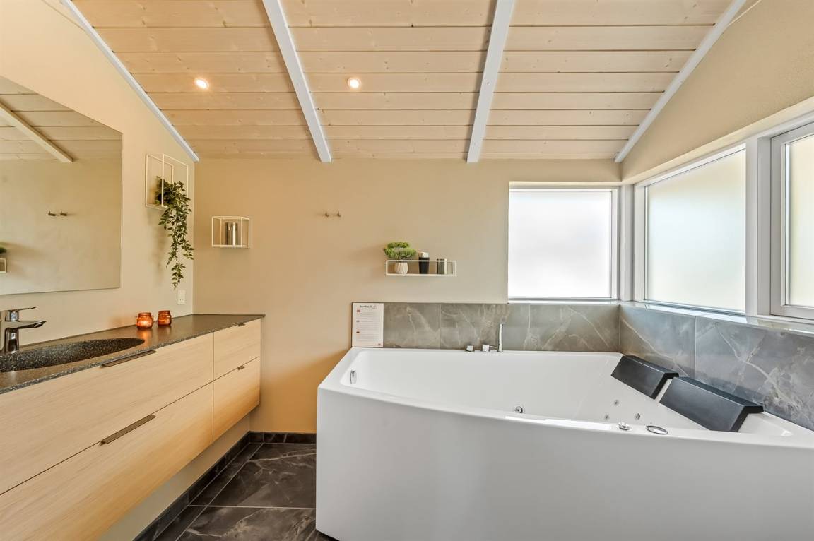 Nach einem langen Strandspaziergang ist es wunderbar, im warmen Wasser des Whirlpools zu entspannen, der sich in einem der zwei frisch renovierten (2025) Badezimmer des Ferienhauses befindet.