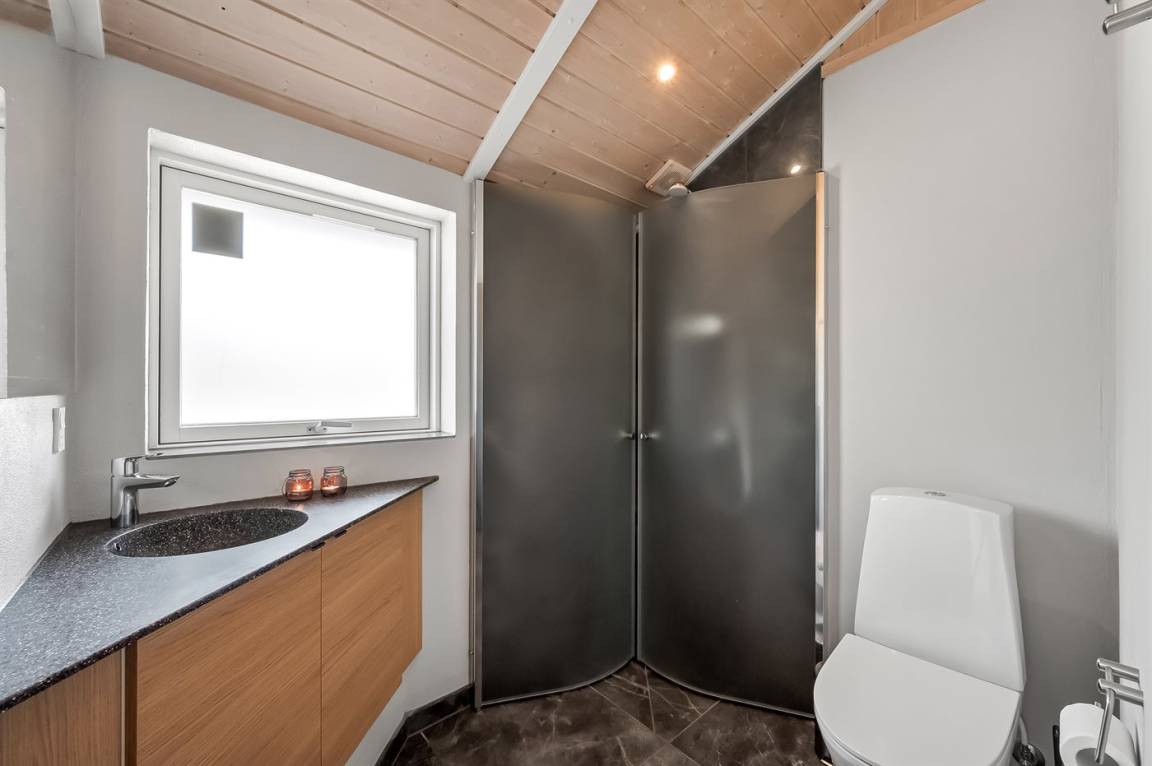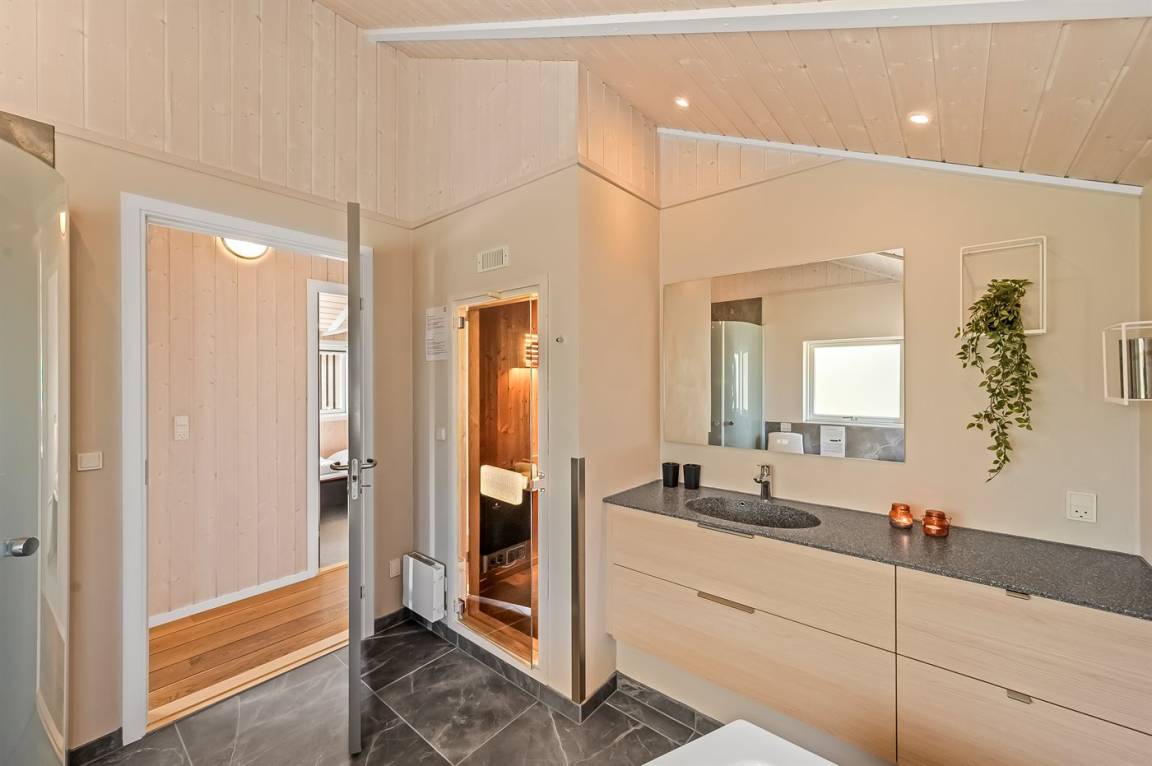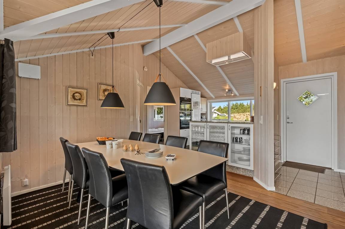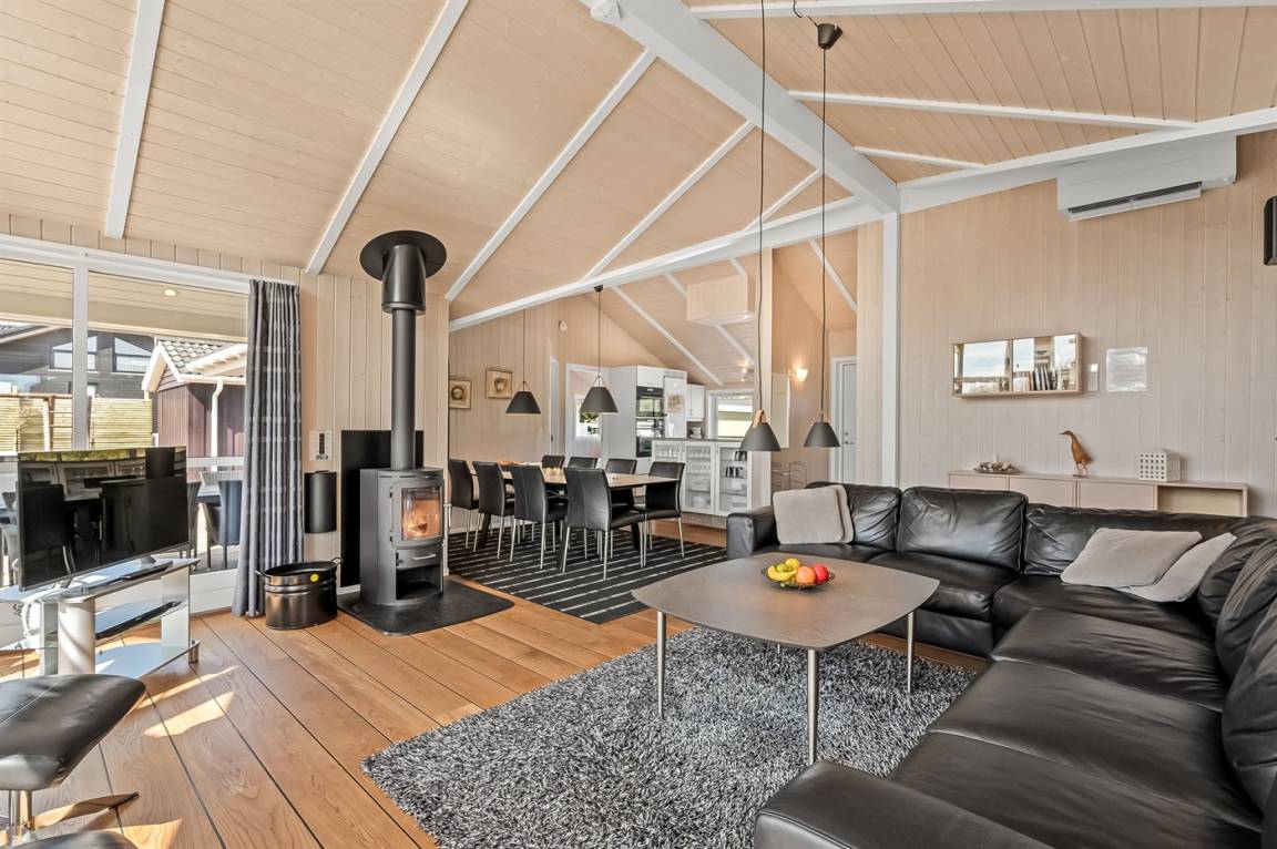 DraußenDie Ferienunterkunft liegt auf einem 1253 m² großen Naturgrundstück. Die Entfernung zum Meer beträgt 800 m. Die Entfernung zum Fjord beträgt 700 m. Die nächste Einkaufsmöglichkeit liegt 400 m entfernt. Es steht ein offenes Terrassenareal zur Verfügung. Außerdem gibt es überdachte Terrasse. Schaukel. Es steht ein Carport zur Verfügung. Parkplatz auf dem Grundstück.