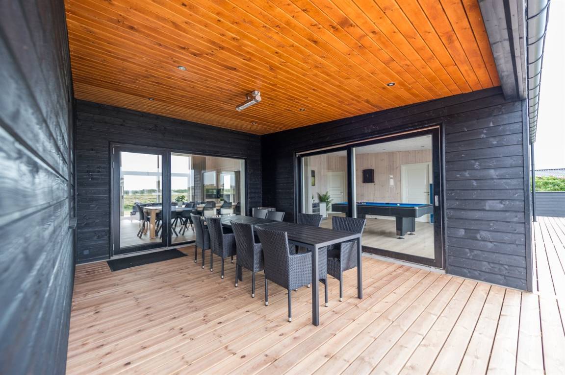 DraußenDie Ferienunterkunft liegt auf einem 1250 m² großen Naturgrundstück. Die Entfernung zum Meer beträgt 400 m. Die nächste Einkaufsmöglichkeit liegt 600 m entfernt. Es steht ein offenes Terrassenareal zur Verfügung. Außerdem gibt es überdachte Terrasse. Schaukel. Fußballtor. Es ist ein Ladestecker für Elektroautos installiert. Ladestecker Typ 2. Mit einer Ladeleistung von 11 kW. Parkplatz auf dem Grundstück.