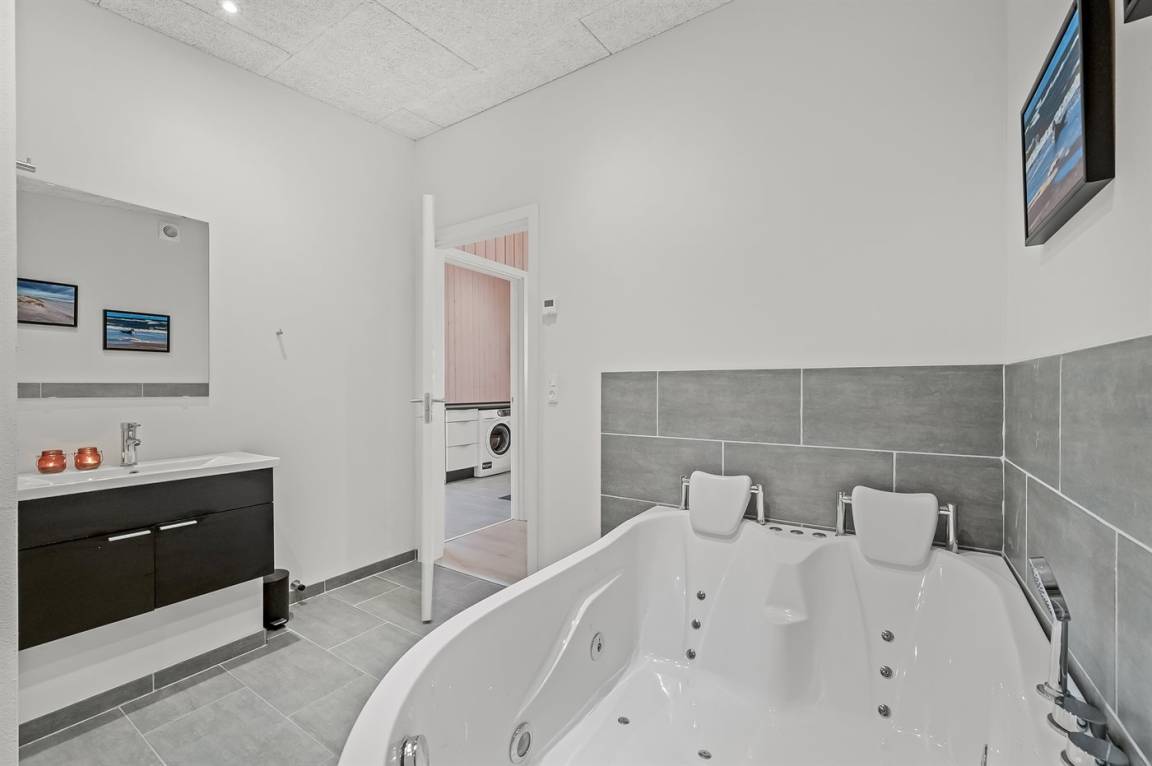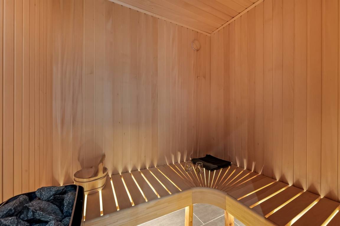 Wenn ihr die Entspannung auf die Spitze treiben wollt, könnt ihr in einem der beiden Badezimmer im warmen Wasser des Whirlpools versinken oder nach einem langen Spaziergang am Strand eine Sauna genießen. Entspannung kann auch in dem großen Sofa mit einem guten Buch oder einfach beim Blick auf die wunderschöne Landschaft draußen mit dem knisternden Kamin im Hintergrund empfohlen werden.