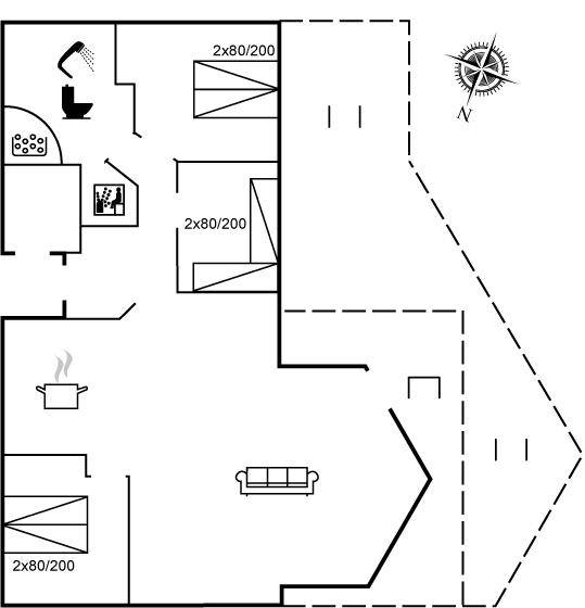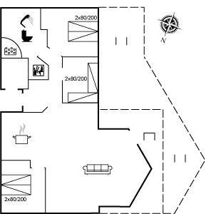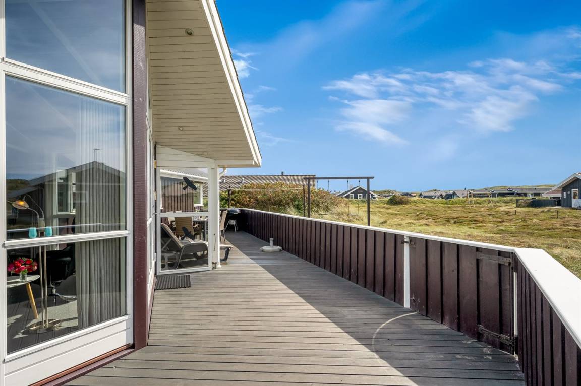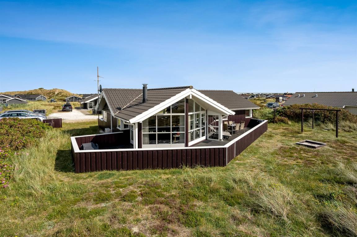 DraußenDie Ferienunterkunft liegt auf einem 1350 m² großen Dünengrundstück. Die Entfernung zum Meer beträgt 300 m. Die Entfernung zum Fjord beträgt 1200 m. Die nächste Einkaufsmöglichkeit liegt 1200 m entfernt. Es steht ein 80 m² Terrassenareal zur Verfügung. Außerdem gibt es 13 m² überdachte Terrasse. Davon insgesamt 70 m² geschlossene Terrasse. Geräteraum. Schaukel. Sandkasten. Parkplatz auf dem Grundstück.