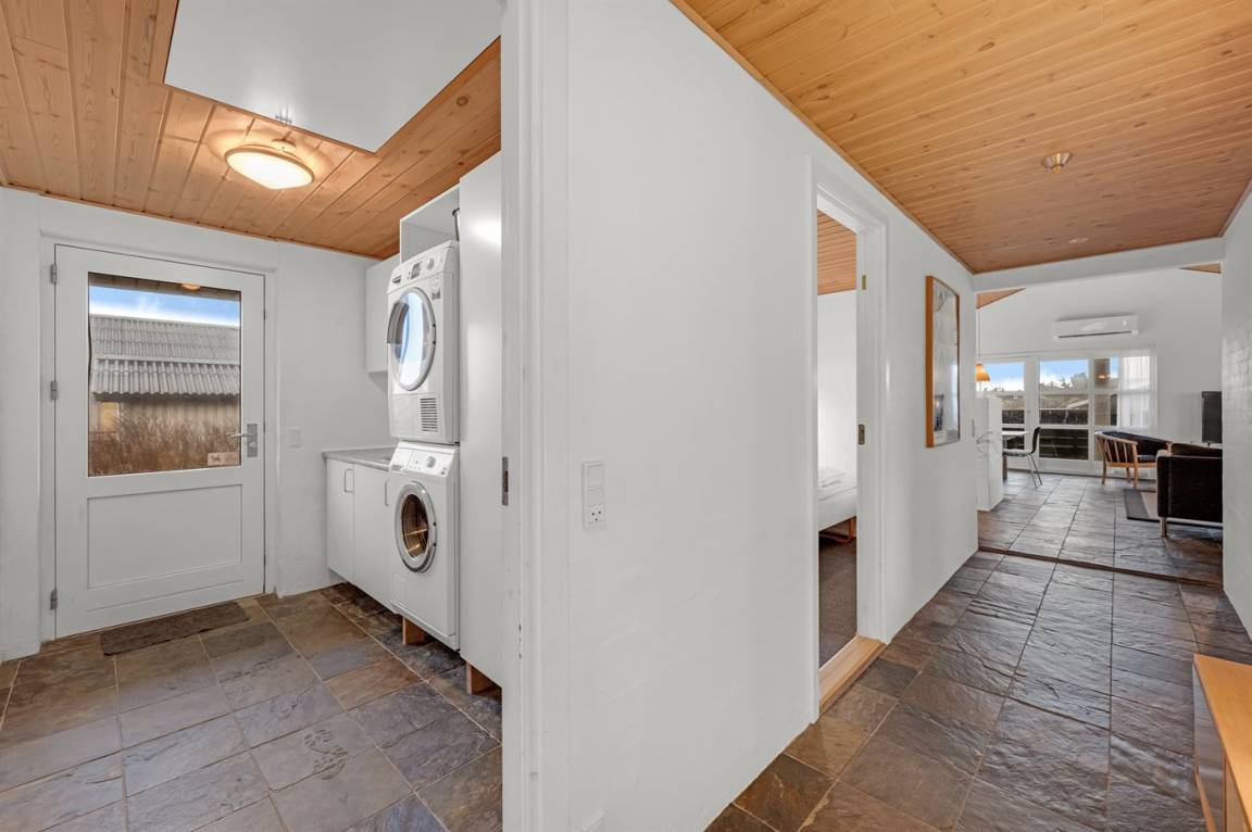 DraußenDie Ferienunterkunft liegt auf einem 1207 m² großen Naturgrundstück. Die Entfernung zum Meer beträgt 850 m. Die Entfernung zum Fjord beträgt 500 m. Die nächste Einkaufsmöglichkeit liegt 4000 m entfernt. In einem Abstand von 8000 m gibt es einen Golfplatz. Es steht ein 50 m² Terrassenareal zur Verfügung. Außerdem gibt es 20 m² überdachte Terrasse. Davon insgesamt 70 m² geschlossene Terrasse. Geräteraum. Parkplatz auf dem Grundstück.